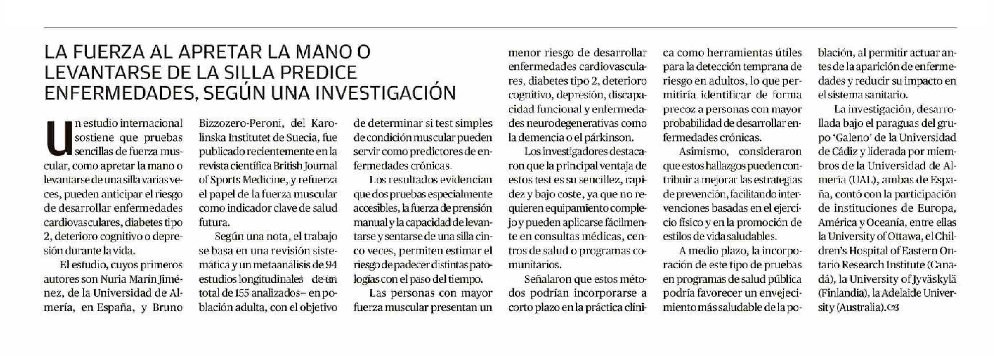 LA FUERZA AL APRETAR LA MANO O LEVANTARSE DE LA SILLA PREDICE , ENFERMEDADES, SEGUN UNA INVESTIGACION