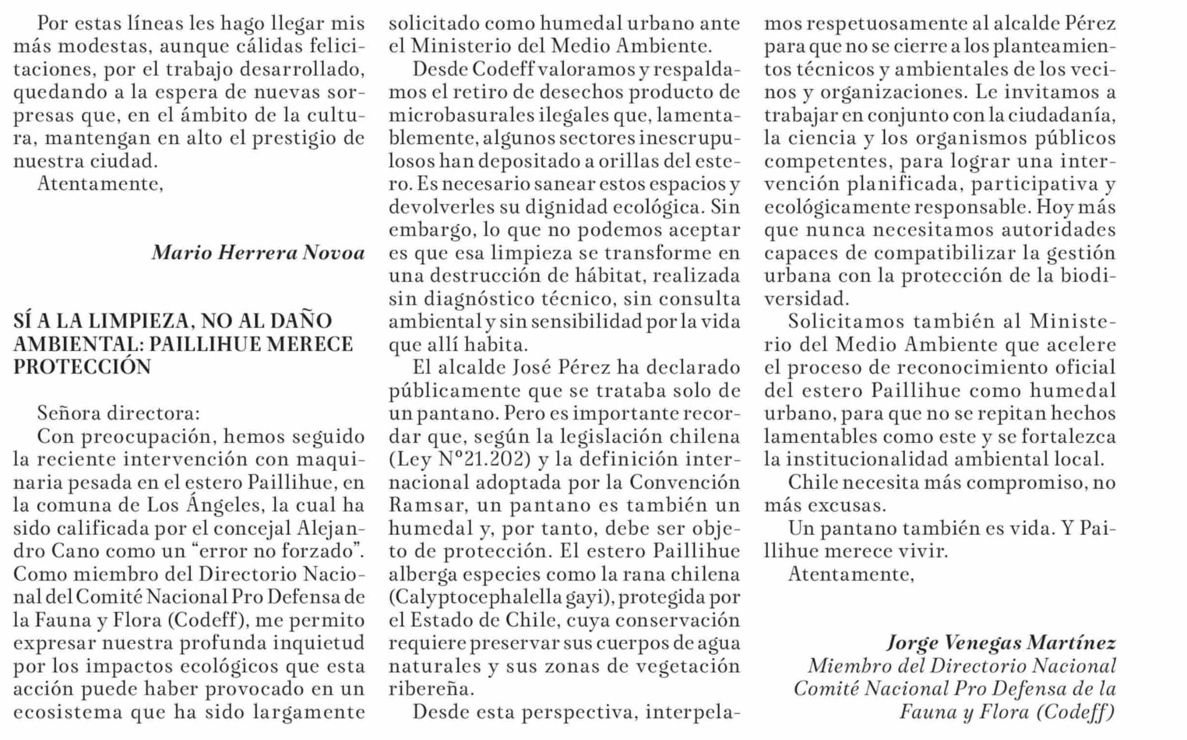 CARTAS: A LA LIMPIEZA, NO AL DAÑO AMBIENTAL: PAILLIHUE MERECE PROTECCIÓN