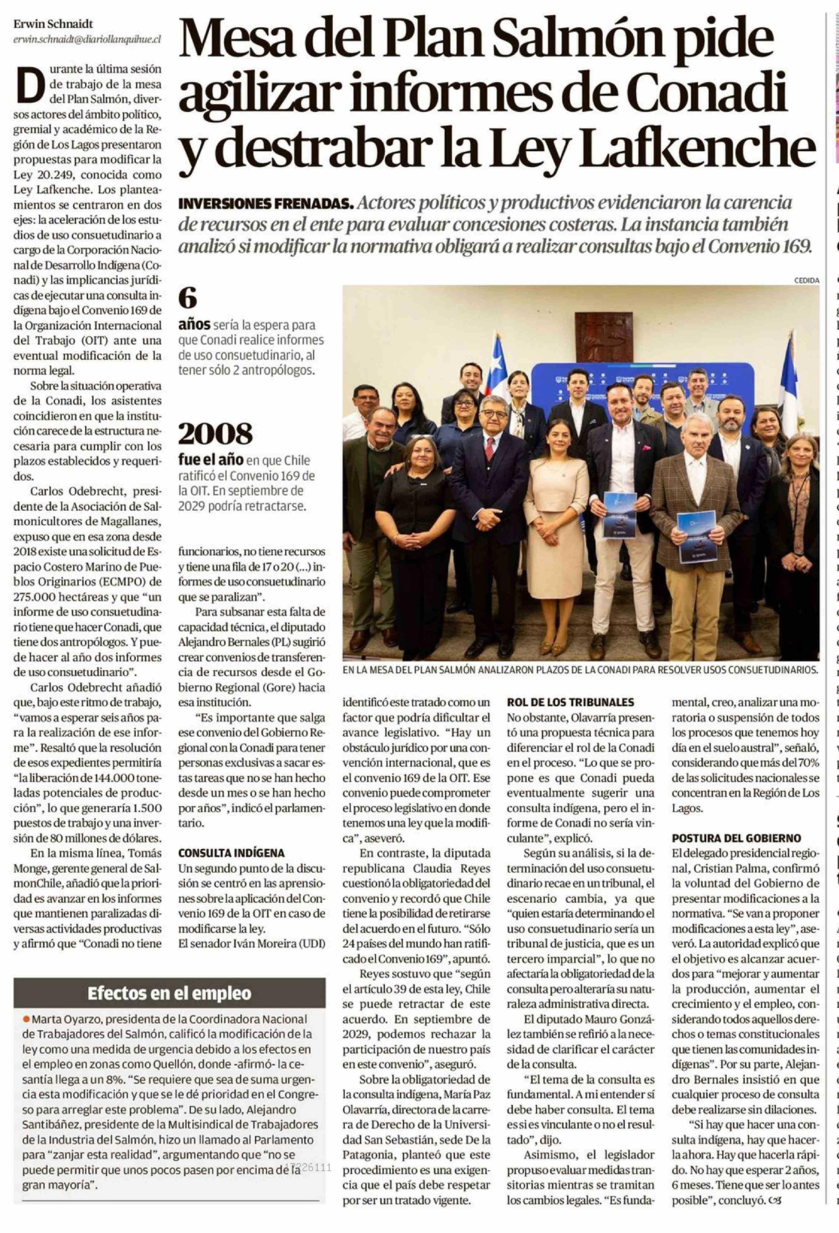 Mesa del Plan Salmón pide agilizar informes de Conadi y destrabar la Ley Lafkenche