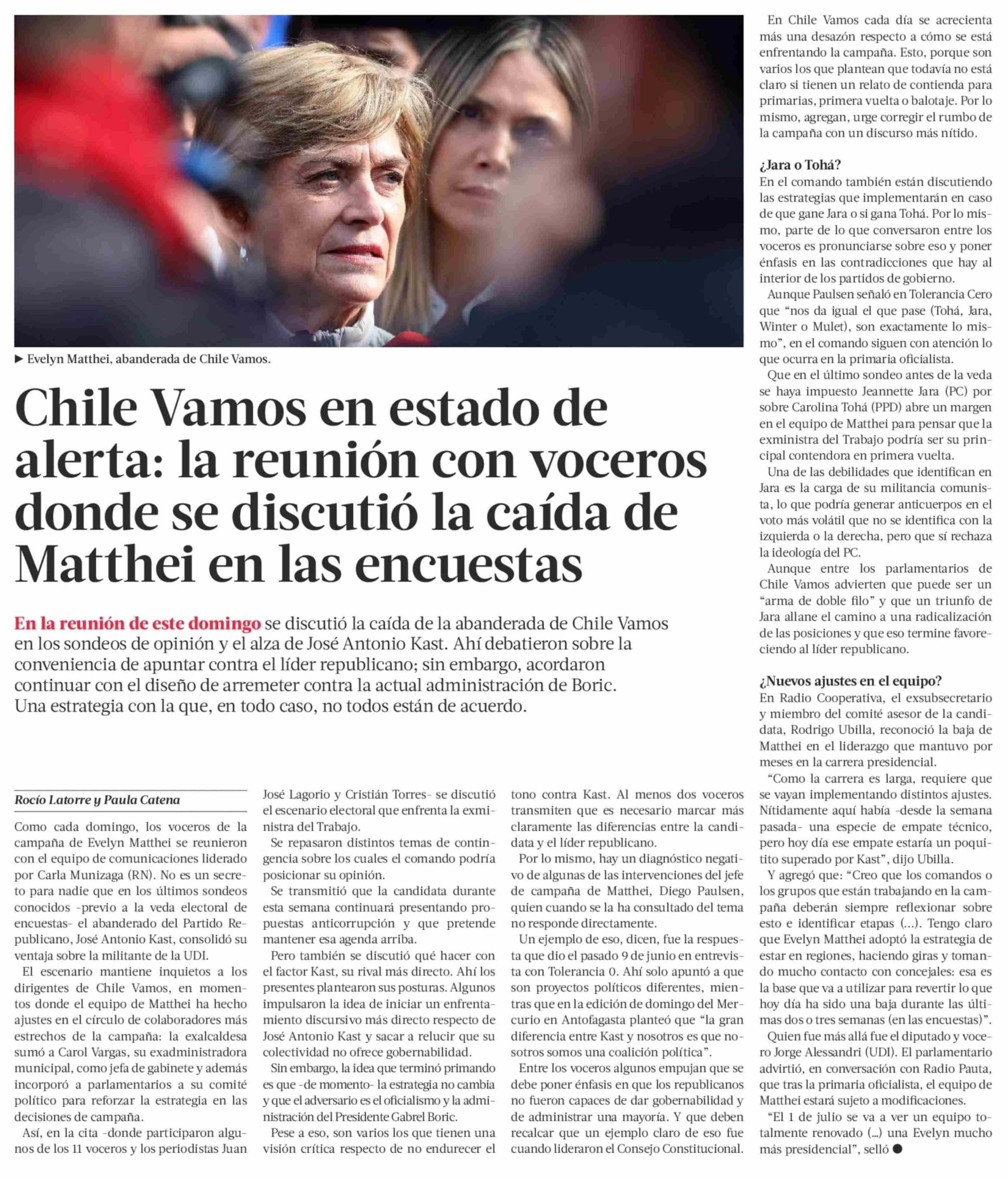 Chile Vamos en estado de alerta: la reunión con voceros donde se discutió la caída de Matthei en las encuestas
