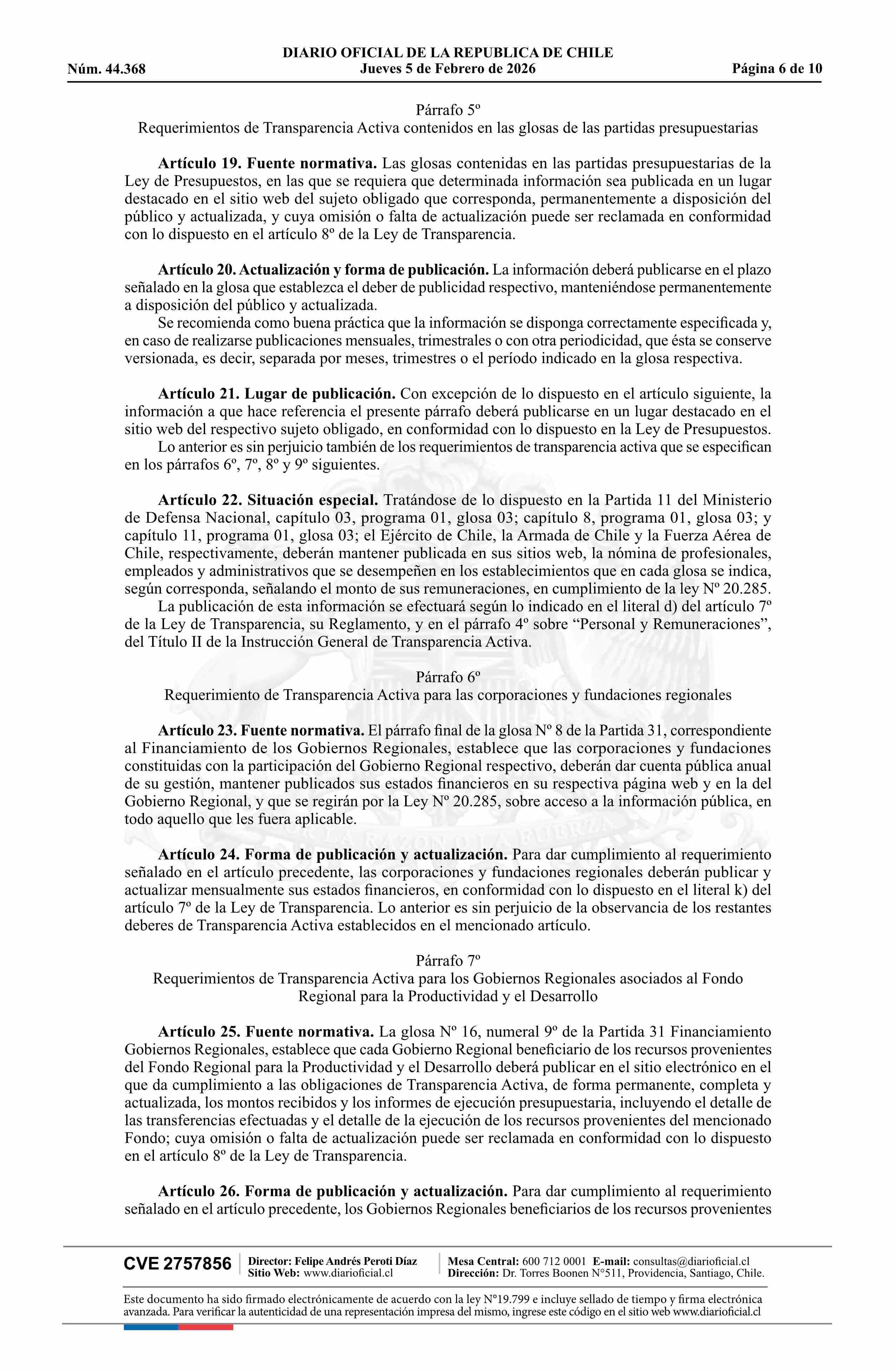 | Fuente: | Diario Oficial Edición Electrónica (Diario Oficial de Chile - 1 Normas Generales) | Página(s): | 51-60 |