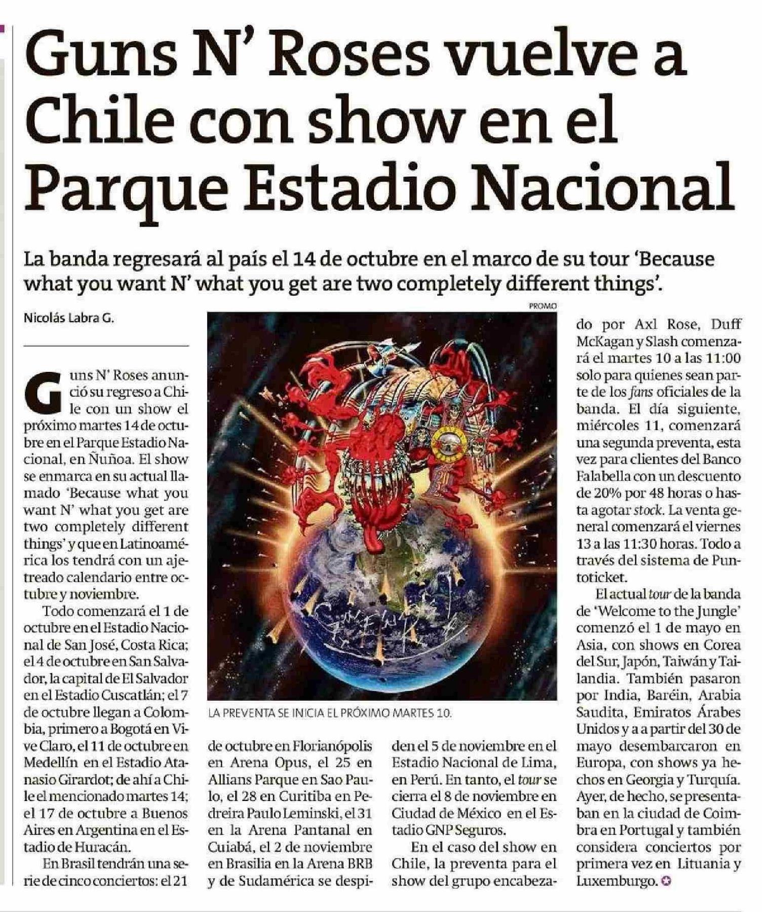 Guns N' Roses vuelve a Chile con show en el Parque Estadio Nacional