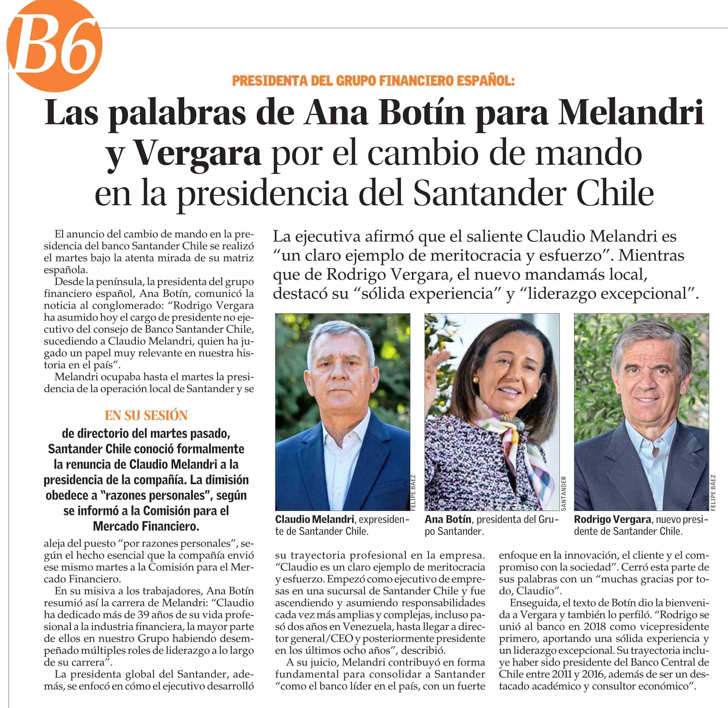 Las palabras de Ana Botín para Melandri y Vergara por el cambio de mando en la presidencia del Santander Chile