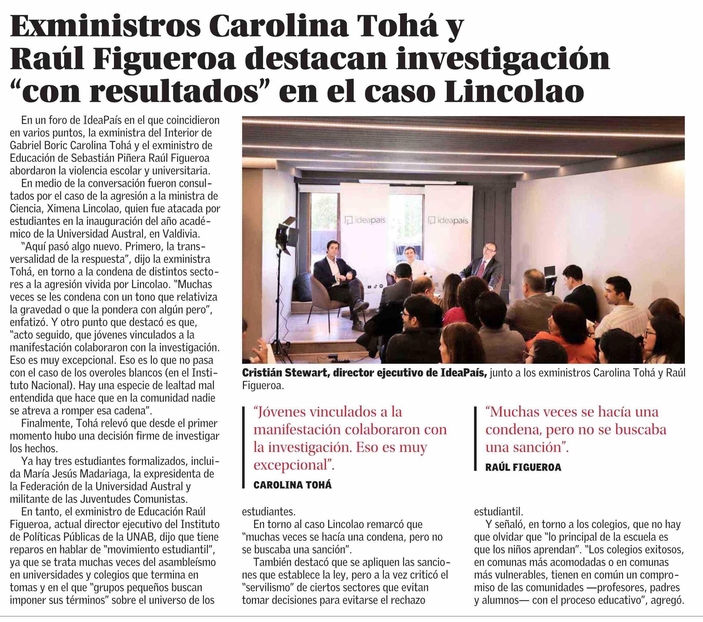 Exministros Carolina Tohá y Raúl Figueroa destacan investigación “con resultados” en el caso Lincolao