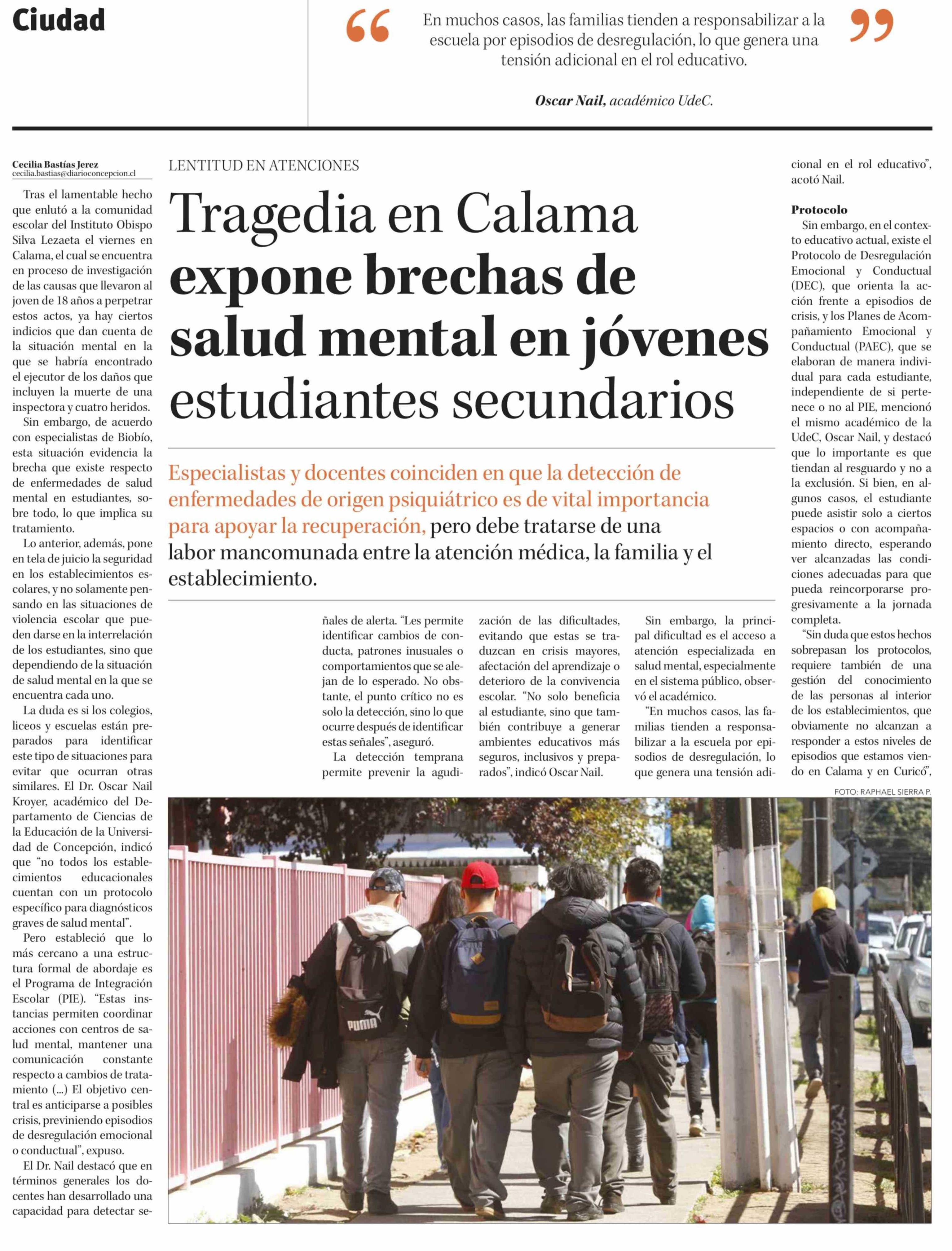 Tragedia en Calama expone brechas de salud mental en jóvenes estudiantes secundarios