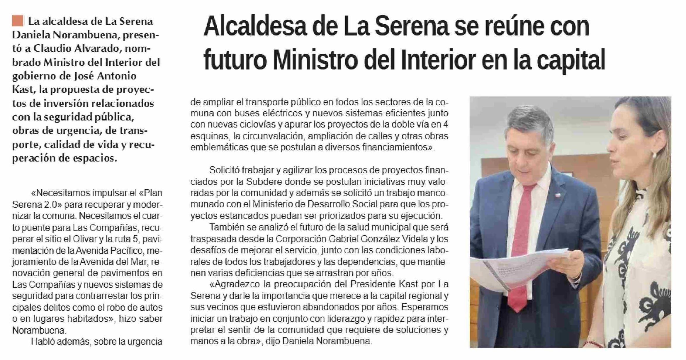 Alcaldesa de La Serena se reúne con futuro Ministro del Interior en la capital