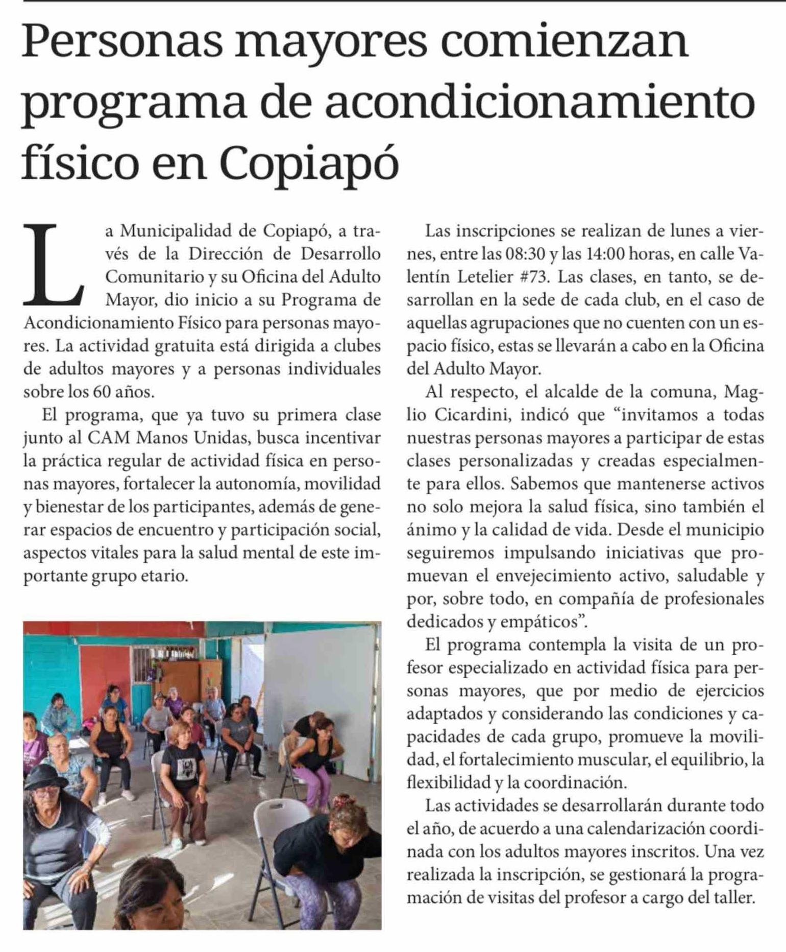 Personas mayores comienzan programa de acondicionamiento físico en Copiapó
