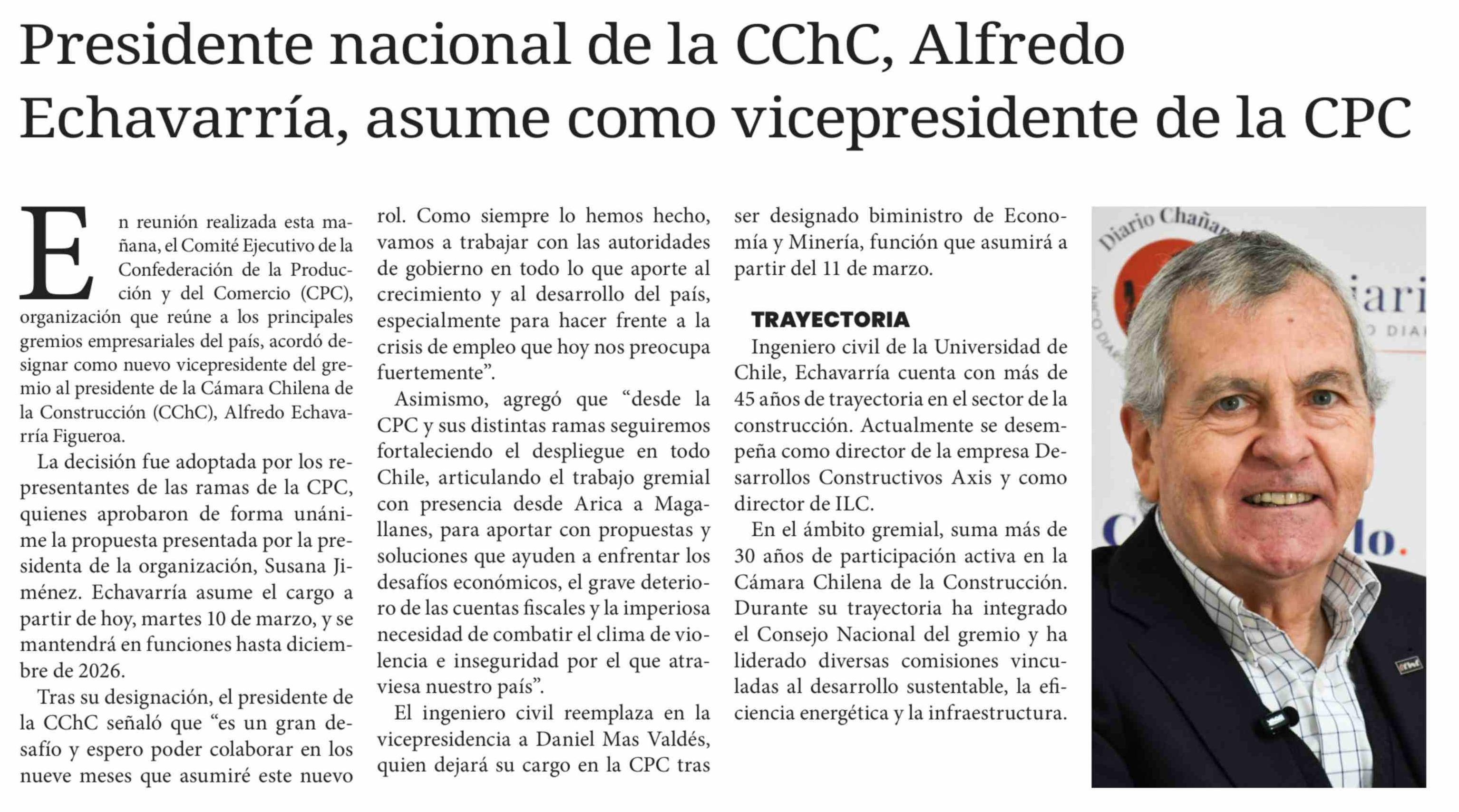 Título: Presidente nacional de la CChC, Alfredo Echavarría, asume como vicepresidente de la CPC
