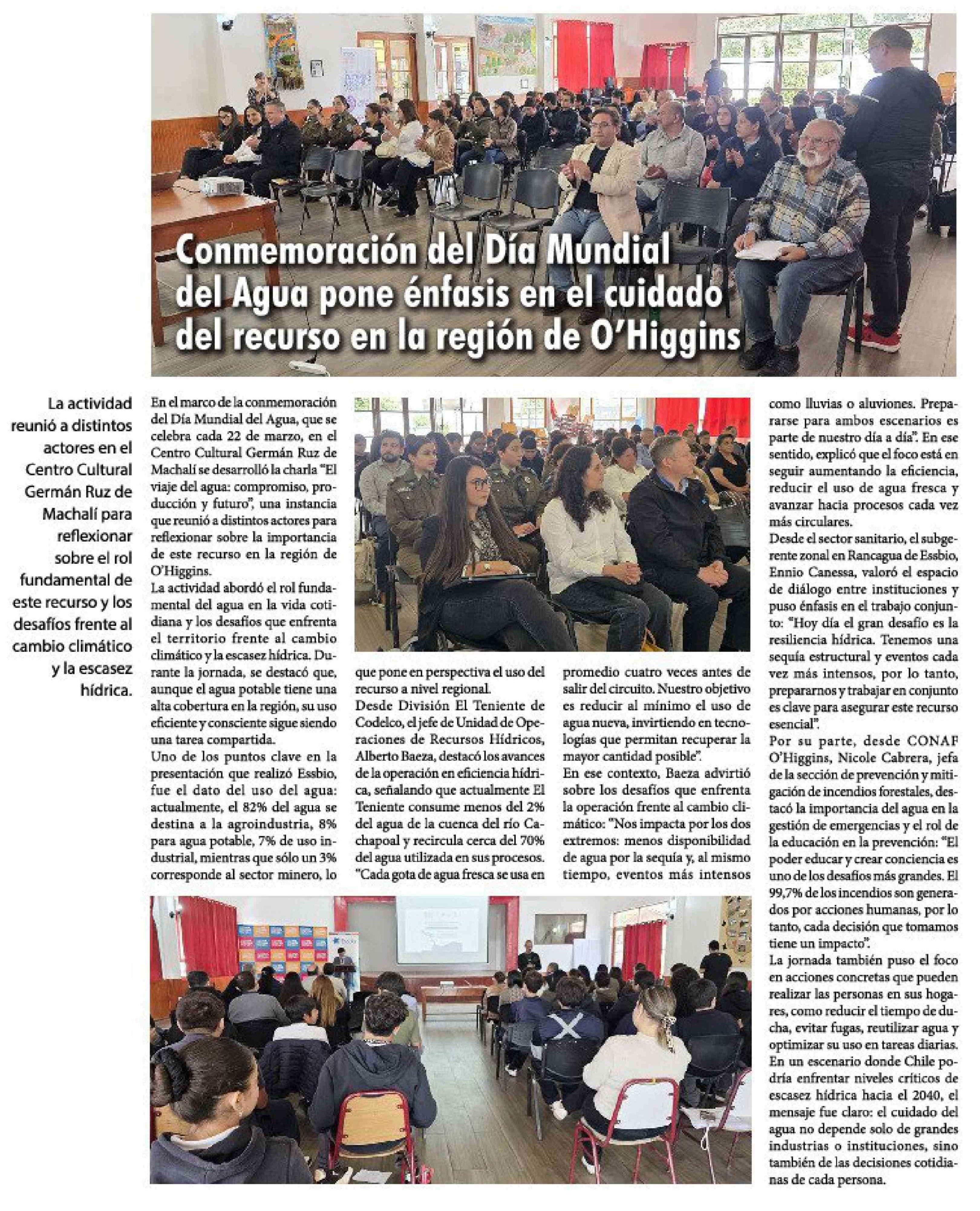 Título: Conmemoración del Día Mundial del Agua pone énfasis en el cuidado del recurso en la región de O'Higgins