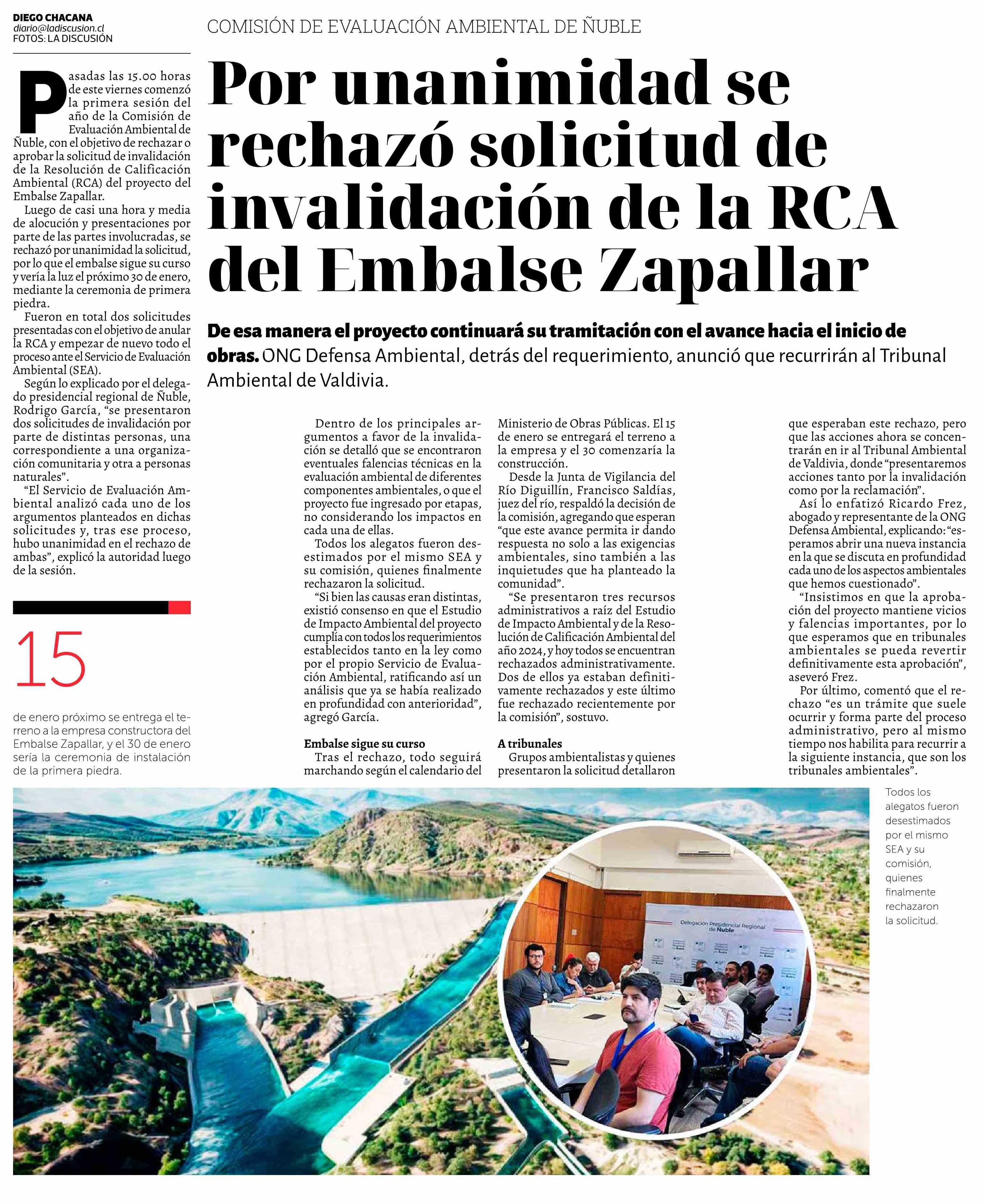 Por unanimidad se rechazó solicitud de invalidación de la RCA del Embalse Zapallar