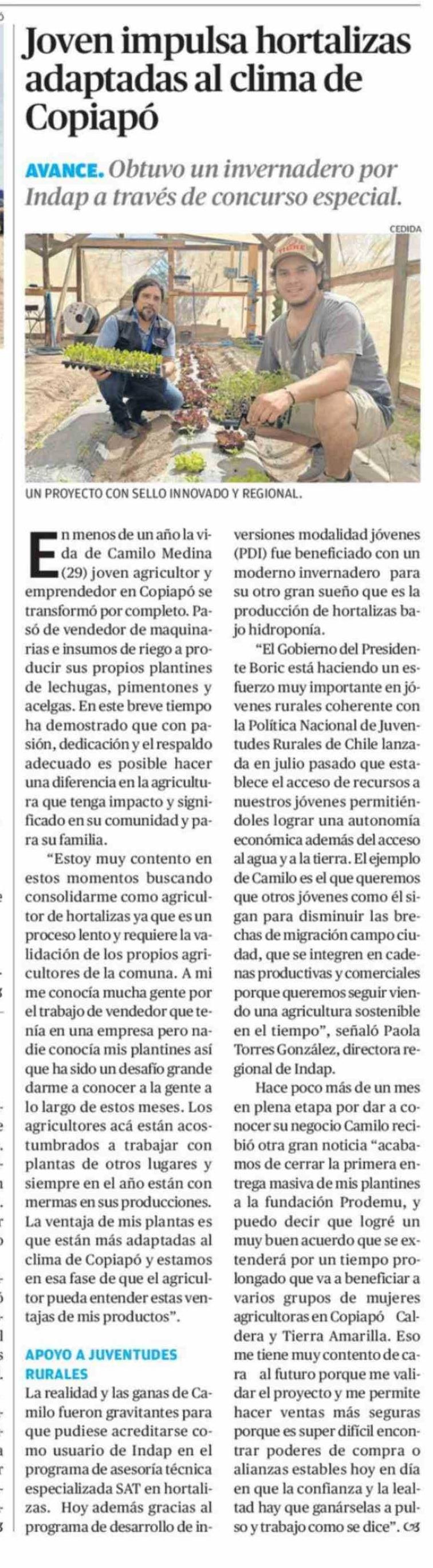 Joven impulsa hortalizas adaptadas al clima de Copiapó