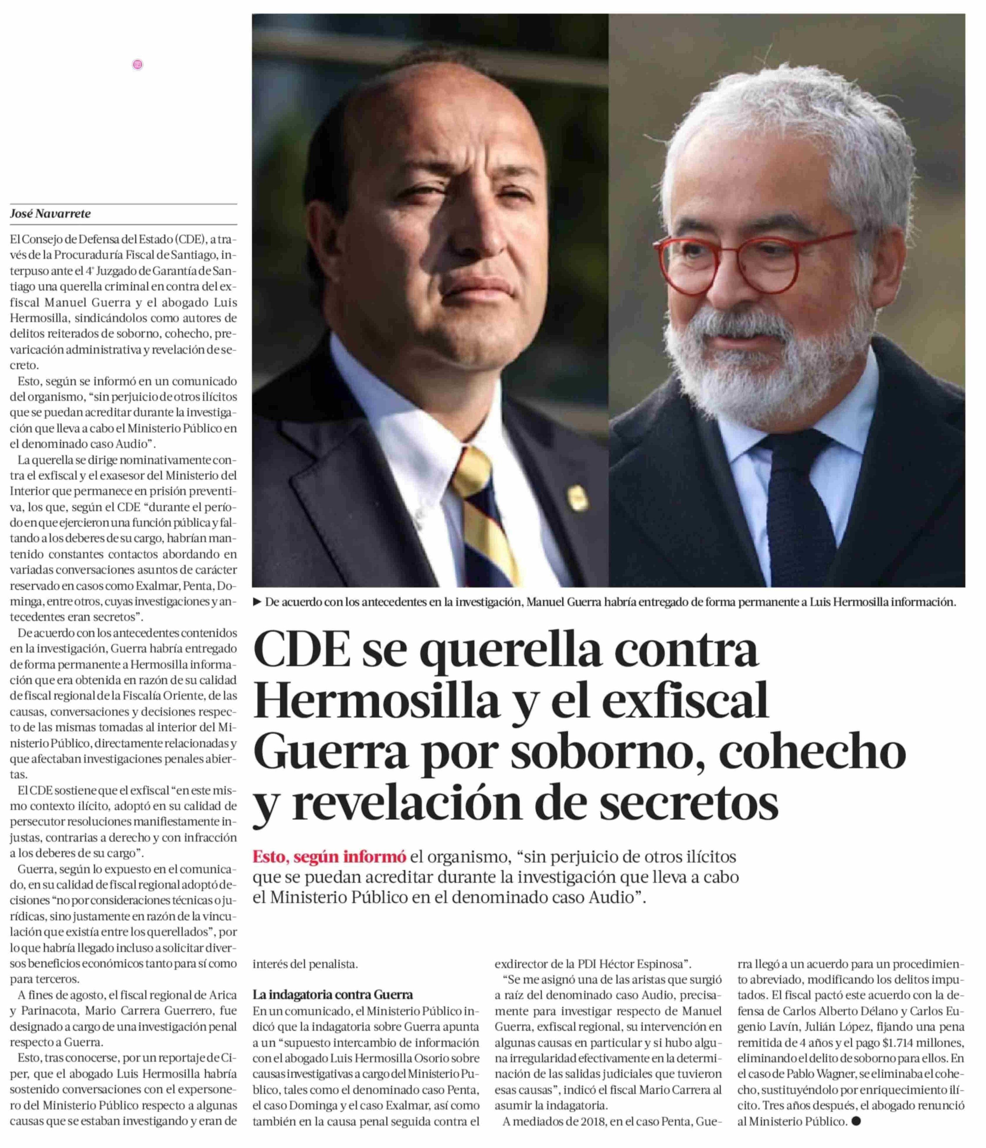 CDE se querella contra Hermosilla y el exfiscal y revelación de secretos Guerra por soborno, cohecho