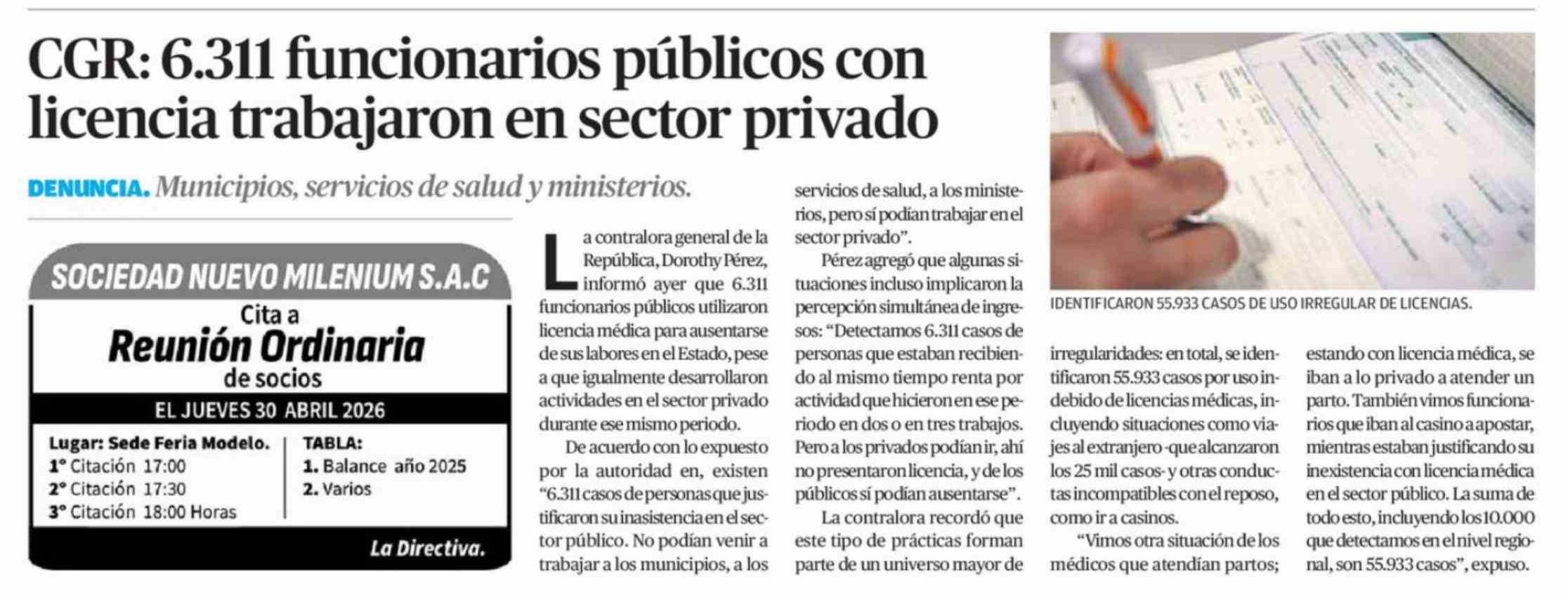 CGR: 6.311 funcionarios públicos con licencia trabajaron en sector privado