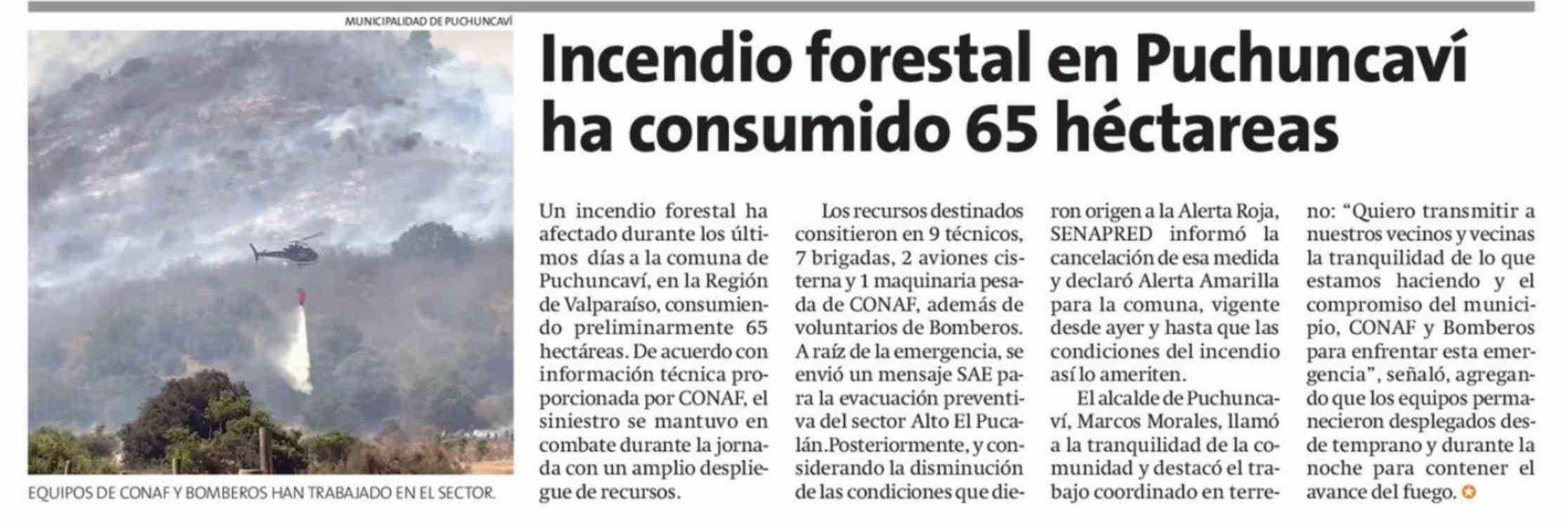 Título: Incendio forestal en Puchuncaví ha consumido 65 héctareas