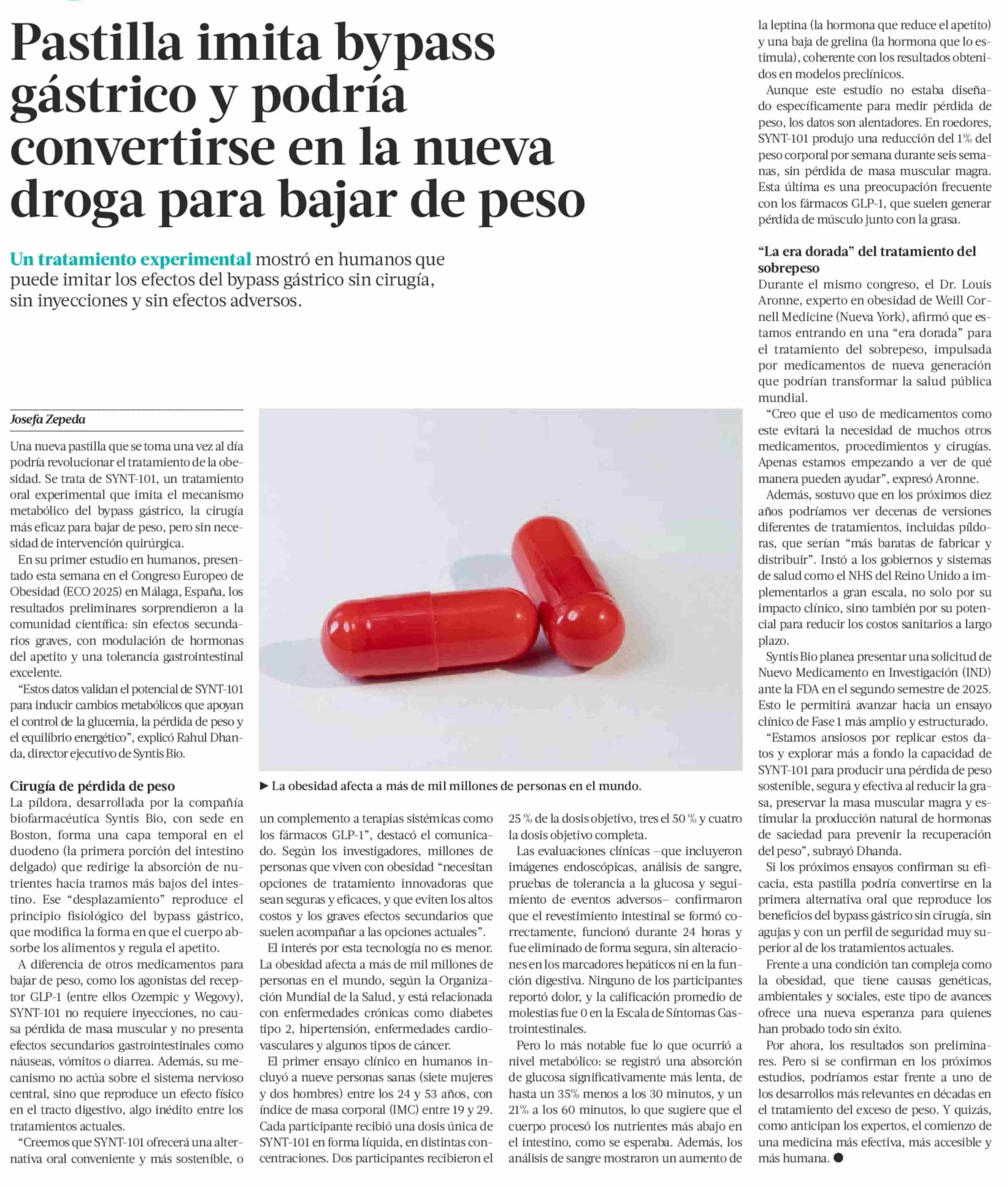 Pastilla imita bypass gástrico y podría convertirse en la nueva droga para bajar de peso