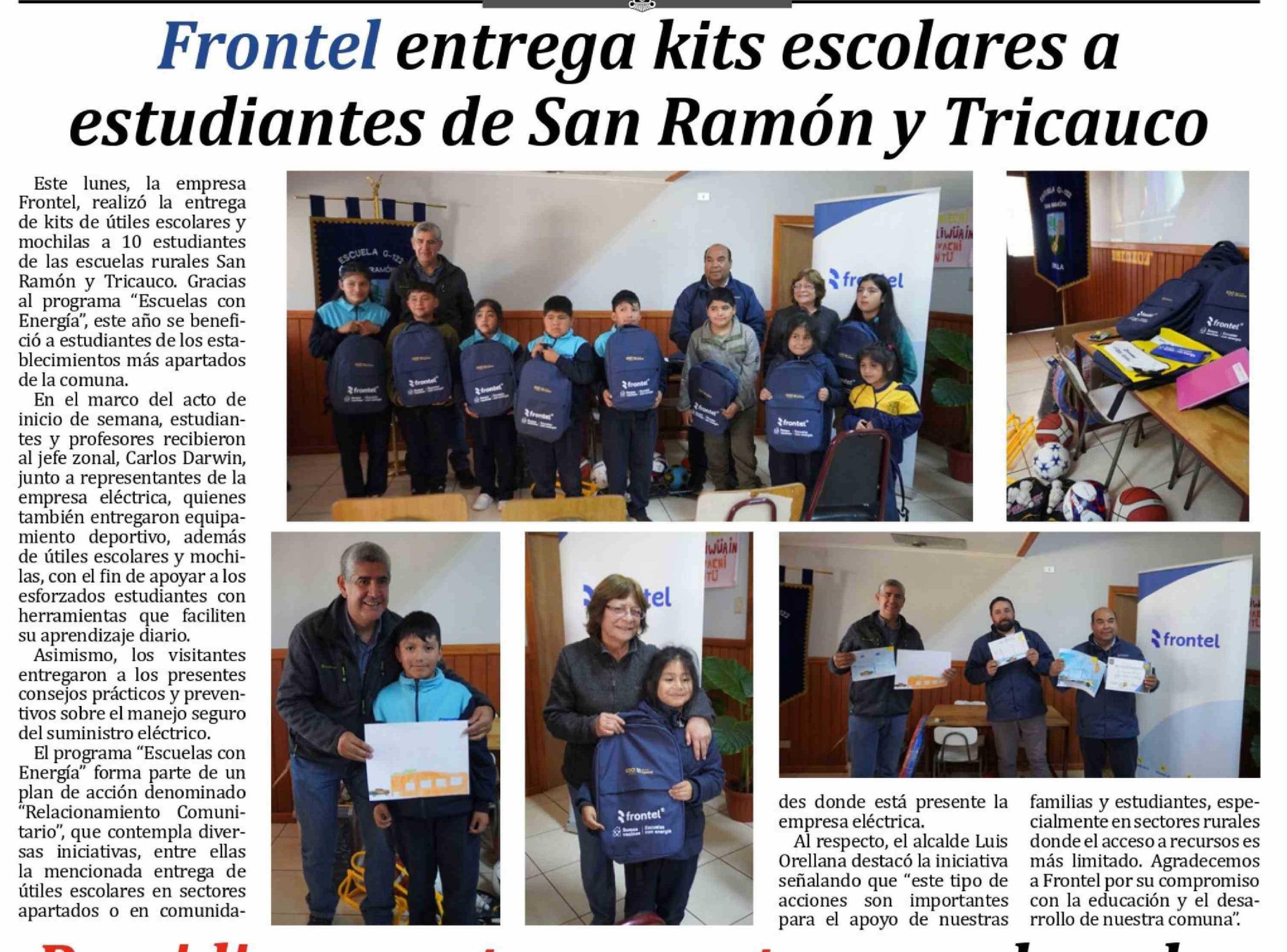 Frontel entrega kits escolares a estudiantes de San Ramón y Tricauco