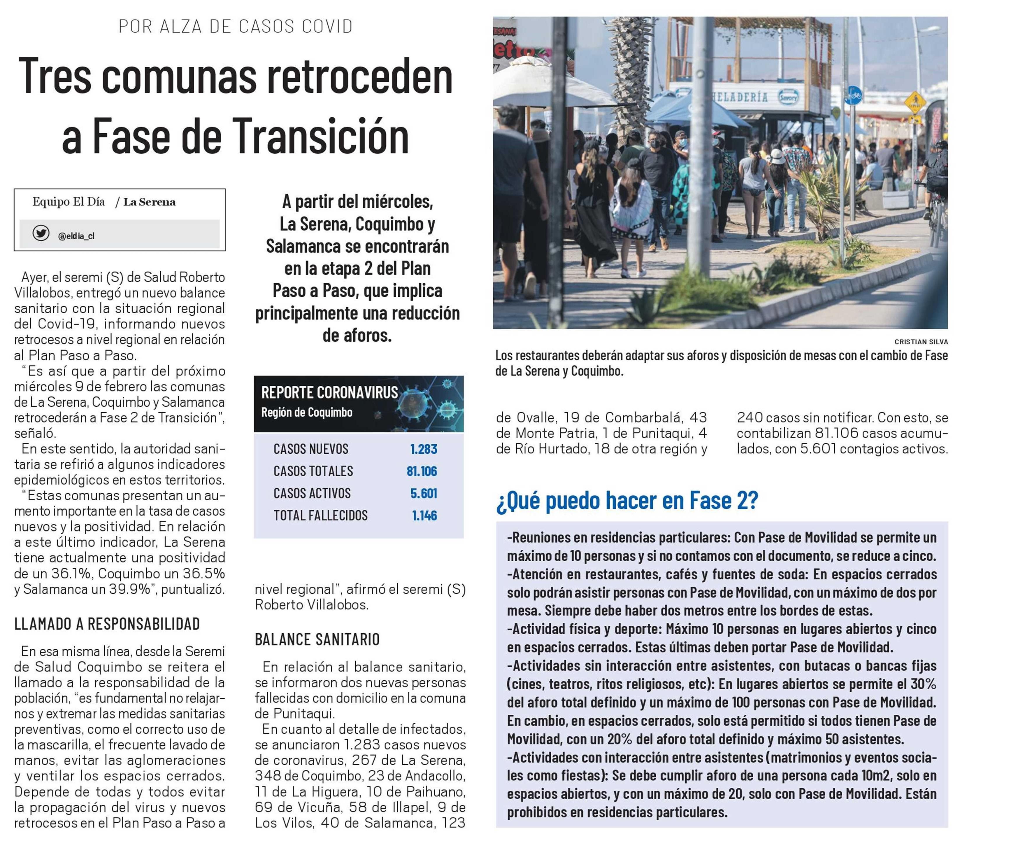 Tres comunas retroceden a Fase de Transición