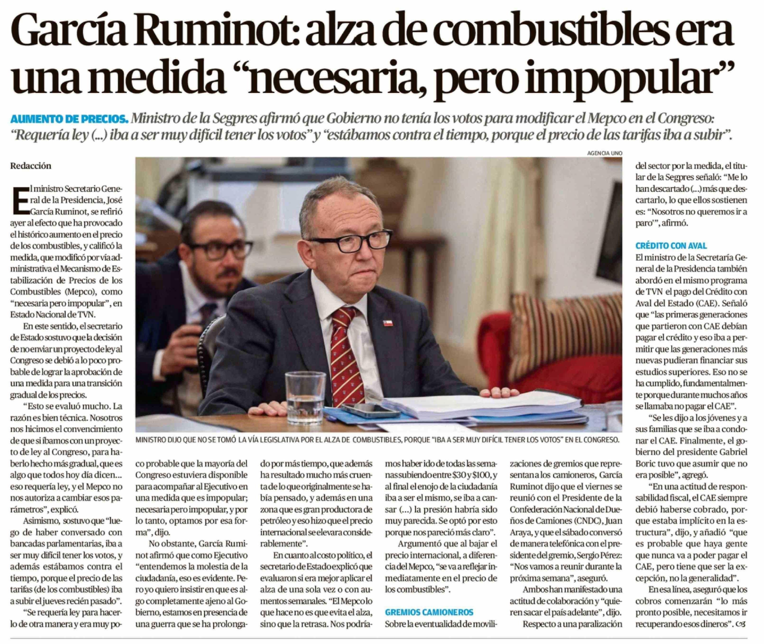 Título: García Ruminot: alza de combustibles era una medida "necesaria, pero impopular"