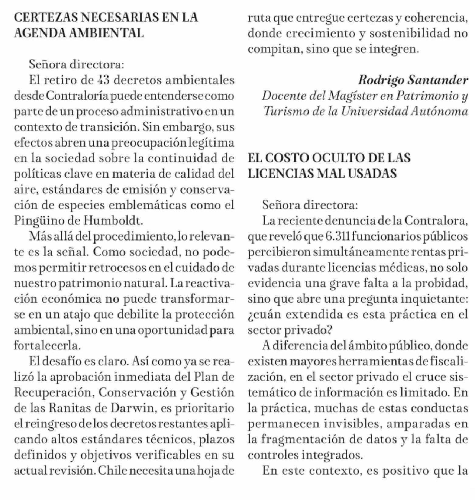 CARTAS: CERTEZAS NECESARIAS EN LA AGENDA AMBIENTAL