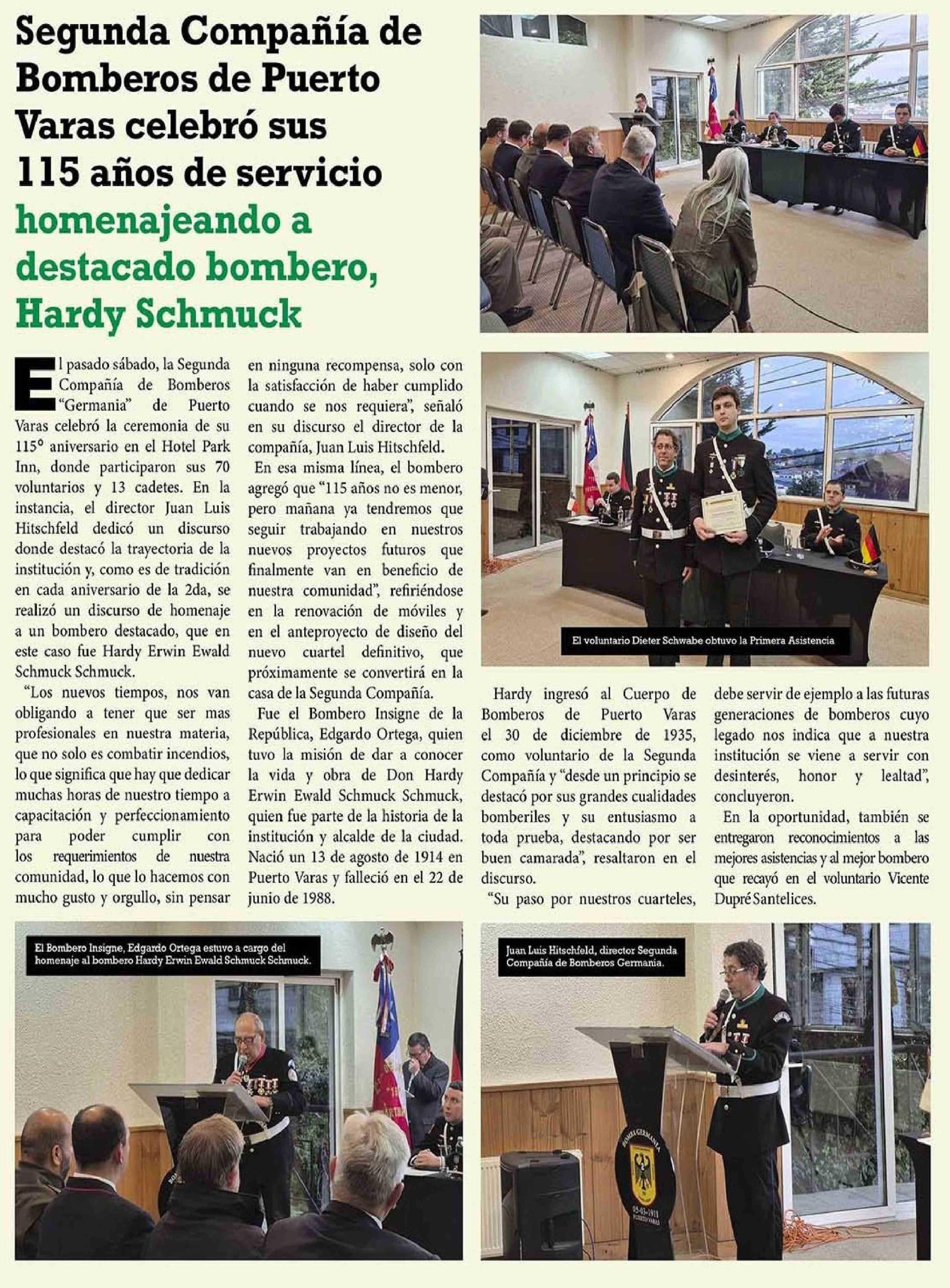Segunda Compañía de Bomberos de Puerto Varas celebro sus 115 años de servicio homenajeando a destacado bombero, Hardy Schmuck