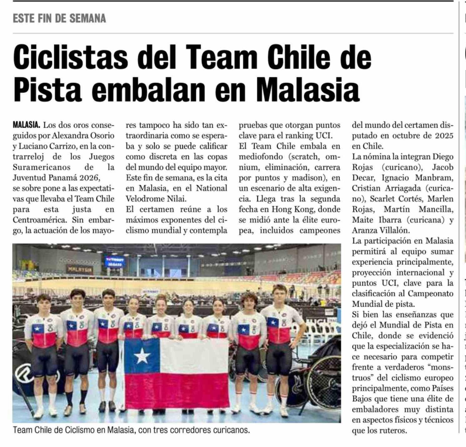 Ciclistas del Team Chile de Pista embalan en Malasia