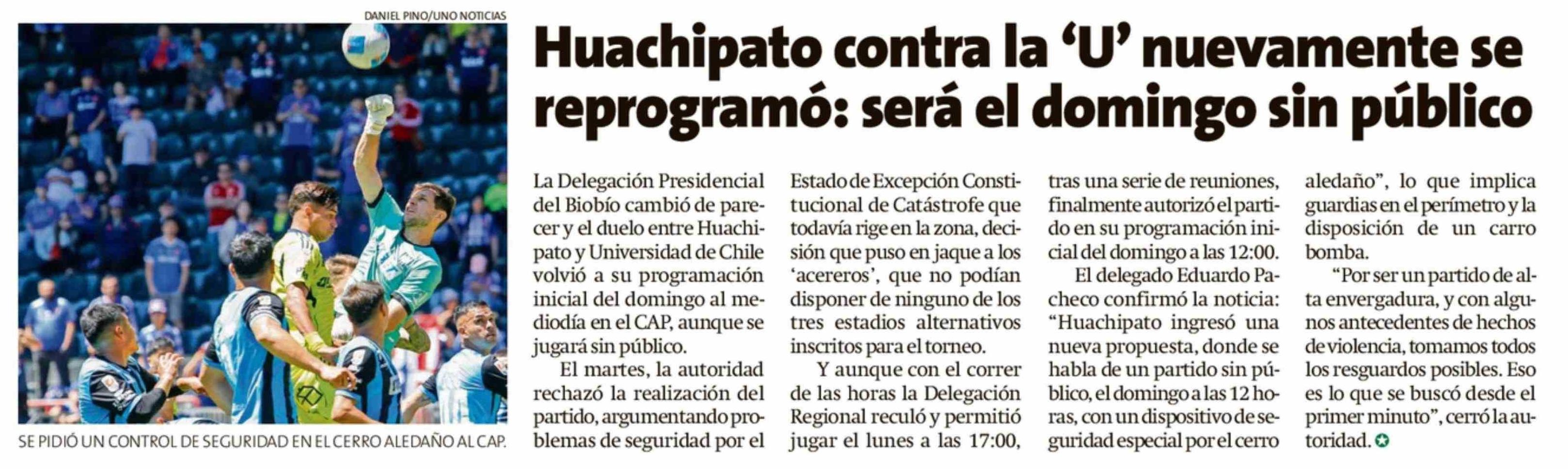 Huachipato contra la 'U' nuevamente se reprogramó: será el domingo sin público