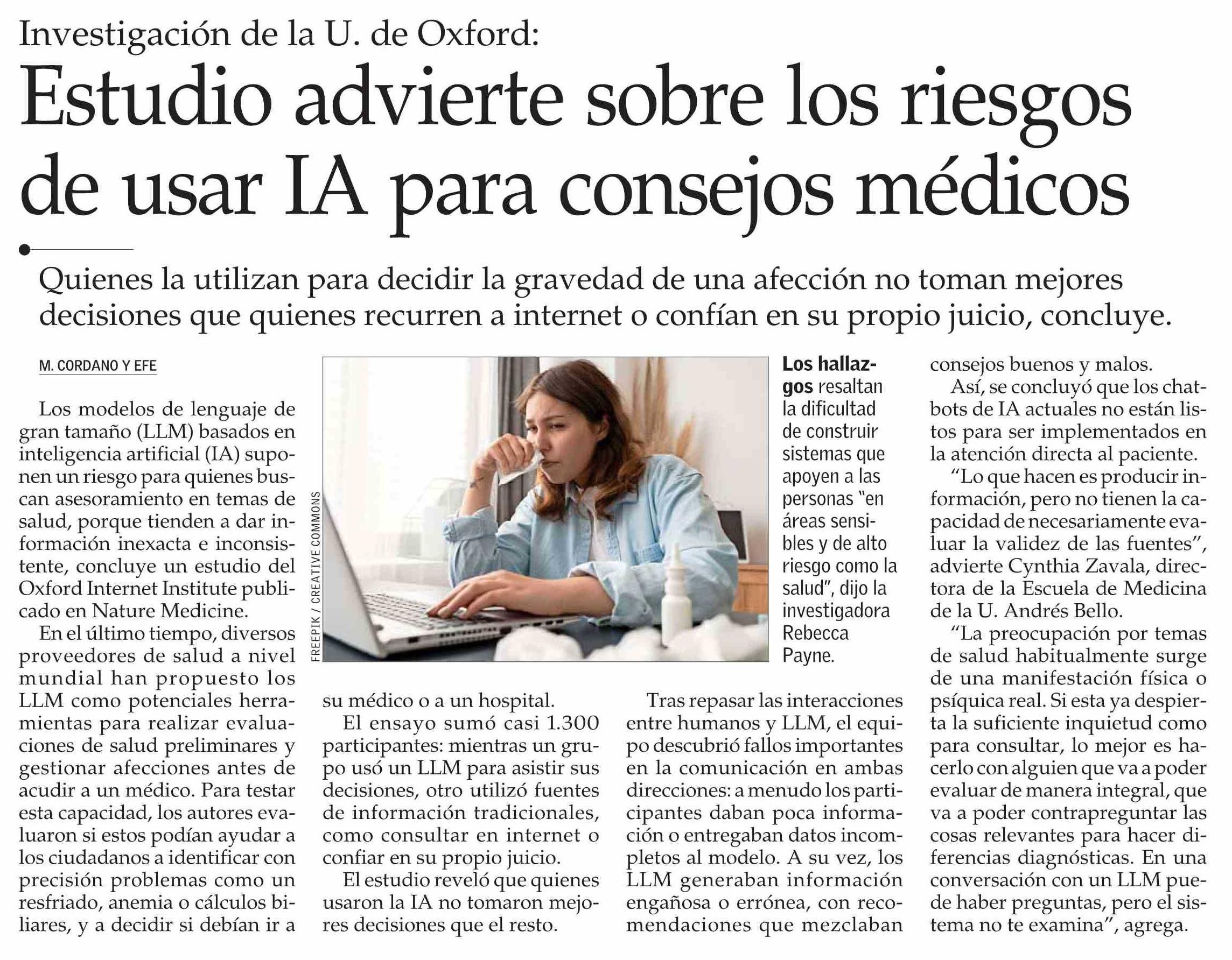 Estudio advierte sobre los riesgos de usar IA para consejos médicos