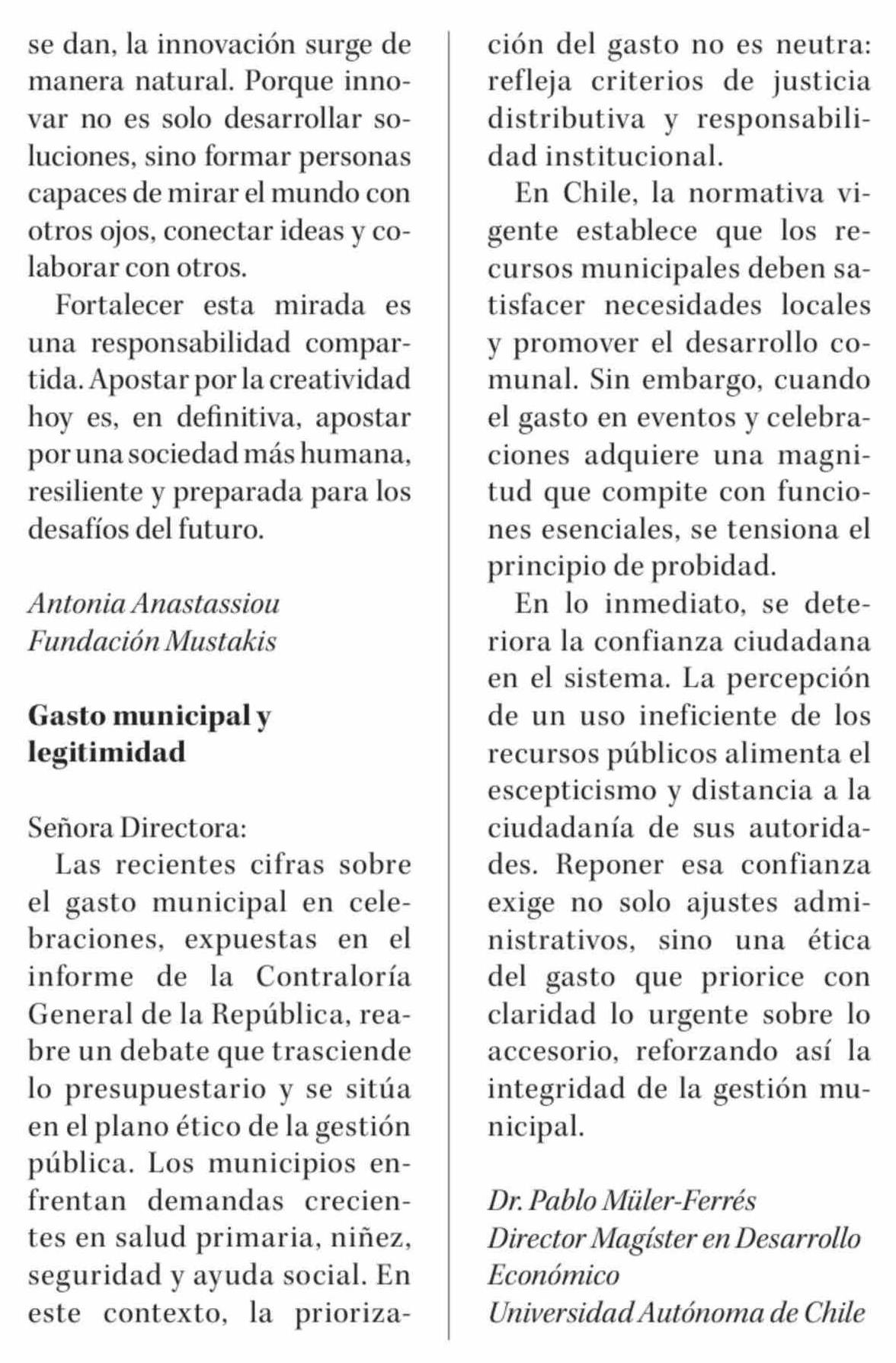 Cartas: Gasto municipal y legitimidad