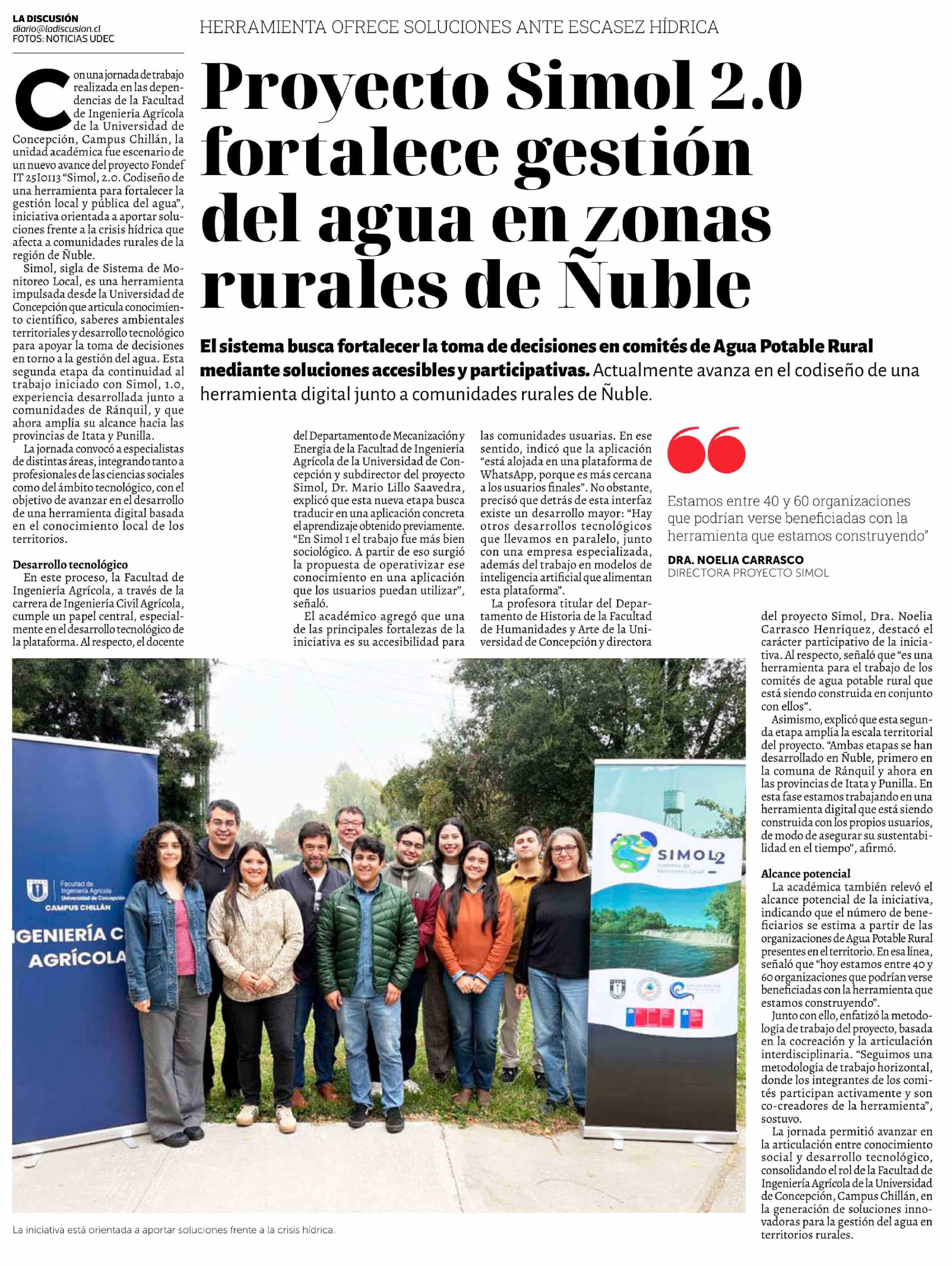Título: Proyecto Simol 2.0 fortalece gestión del agua en zonas rurales de Nuble