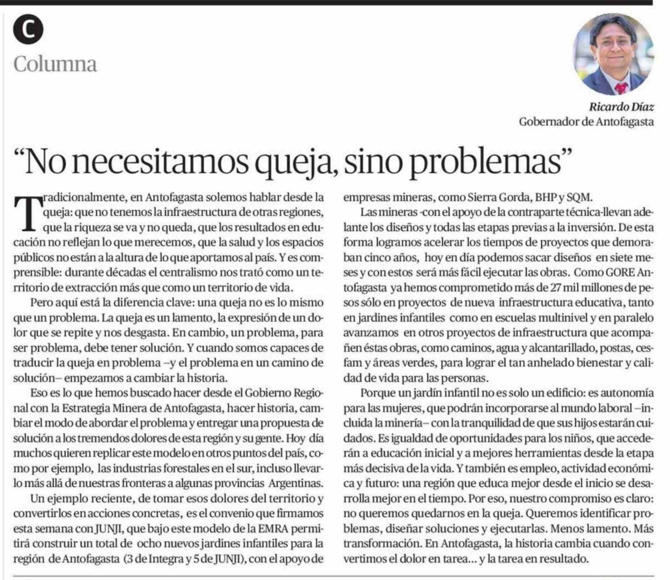 Columnas de Opinión: "No necesitamos queja, sino problemas"