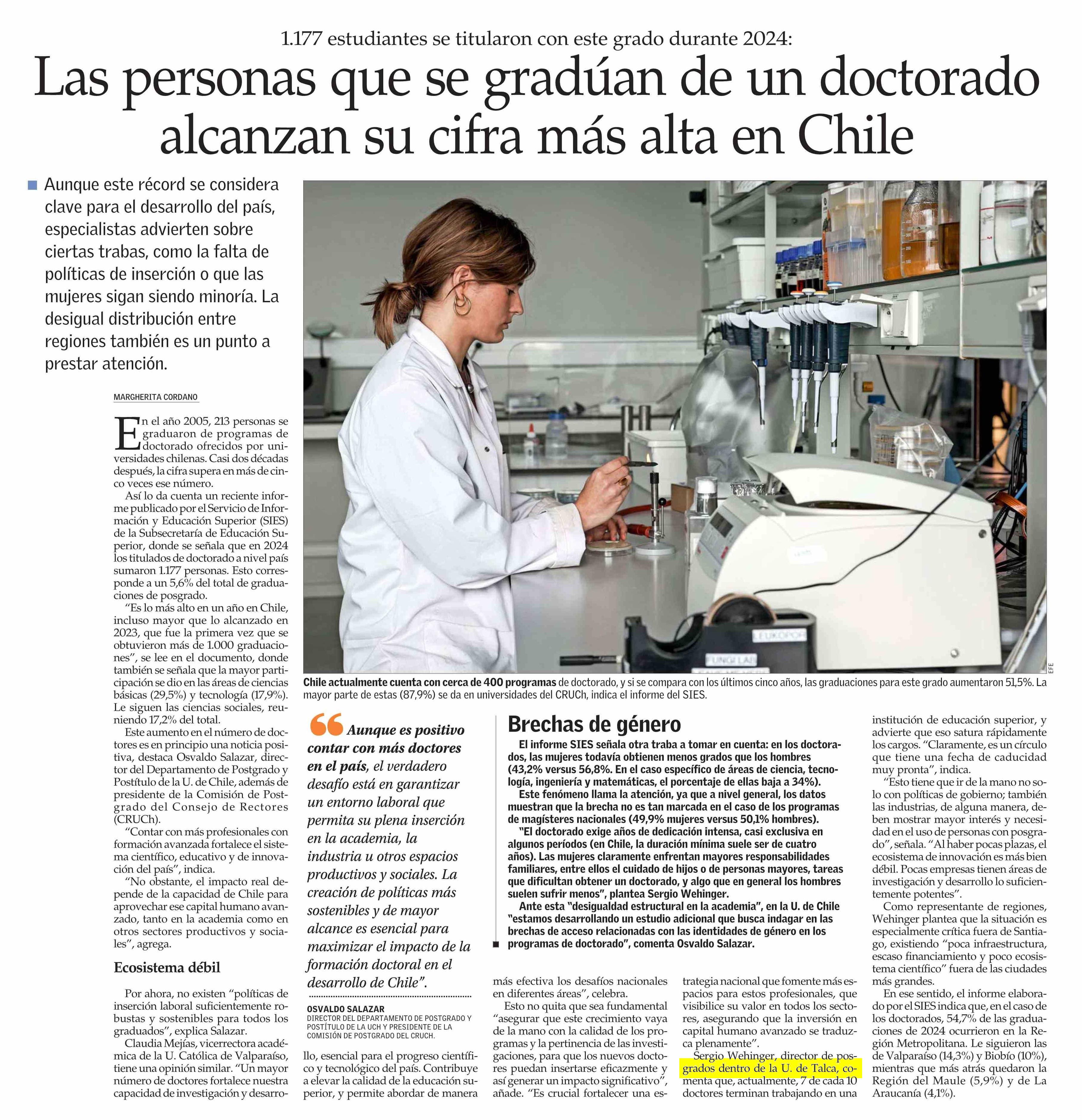 Las personas que se gradúan de un doctorado alcanzan su cifra más alta en Chile