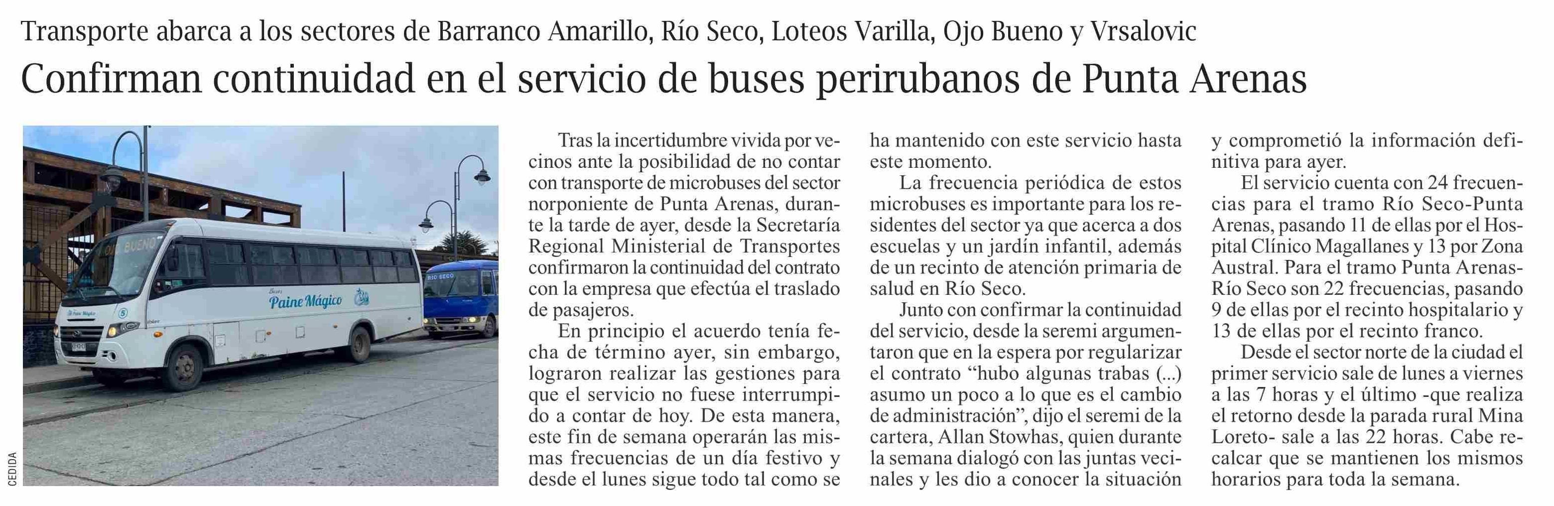 Confirman continuidad en el servicio de buses perirubanos de Punta Arenas