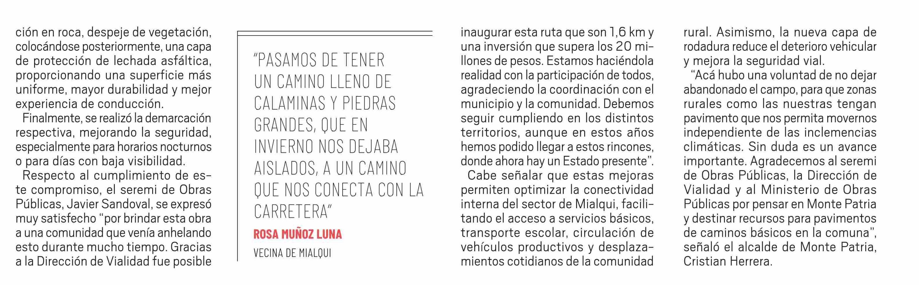 MOP inaugura pavimentación de la ruta D743: inversión superó los $120 millones