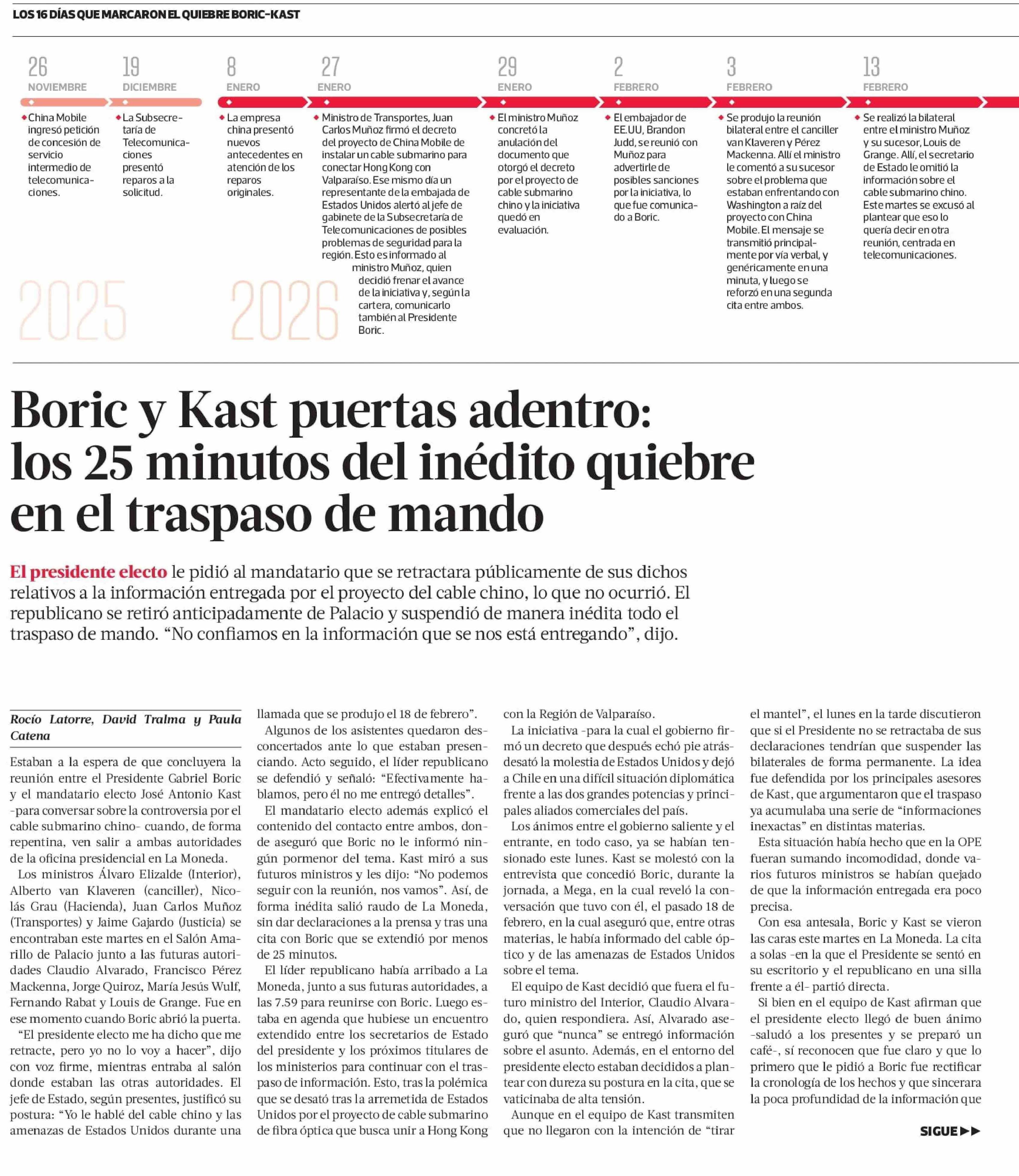 Boric y Kast puertas adentro: los 25 minutos del inédito quiebre en el traspaso de mando