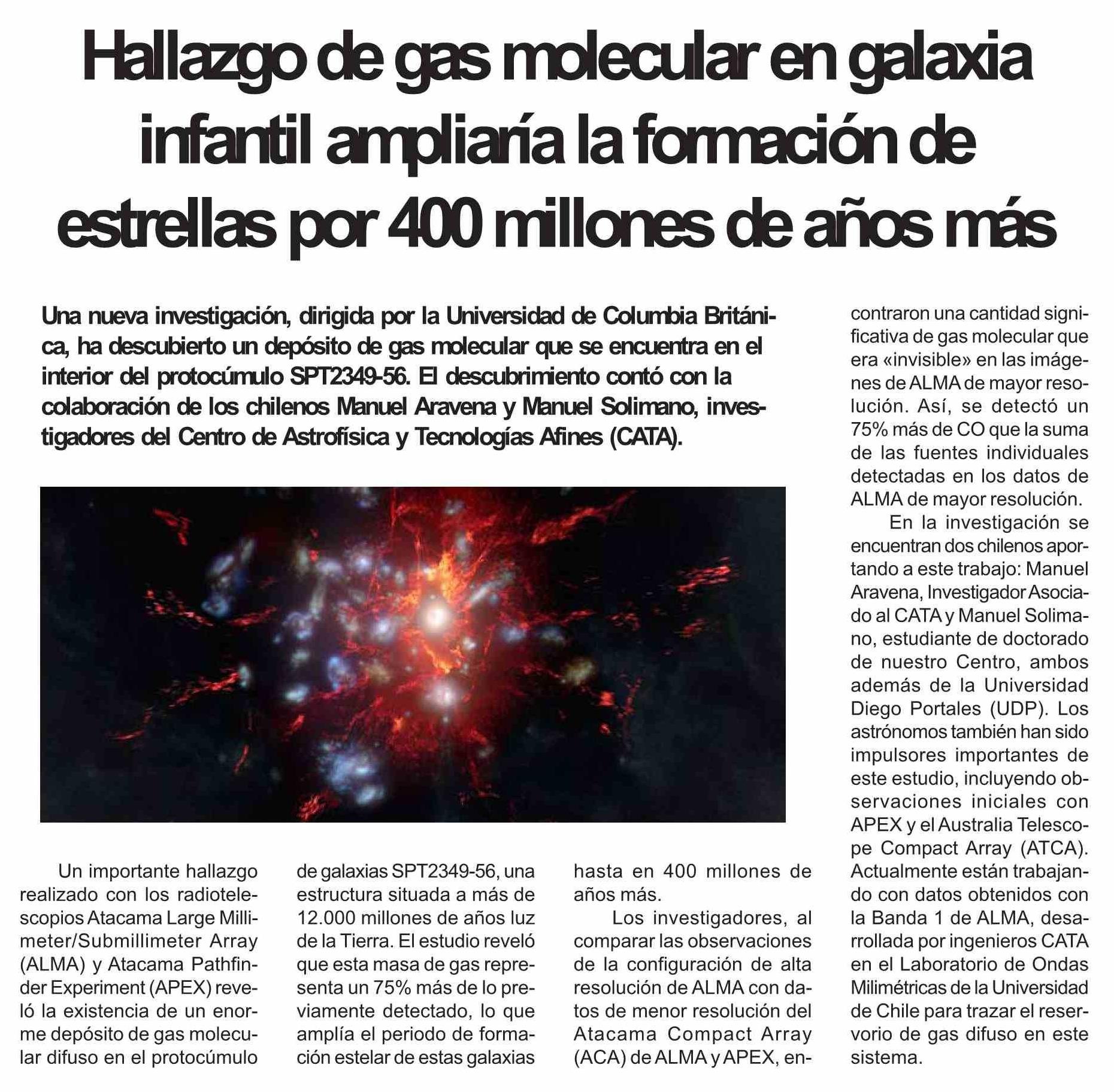 Hallazgo de gas molecular en galaxia infantil ampliaría la formación de estrellas por 400 millones de años más