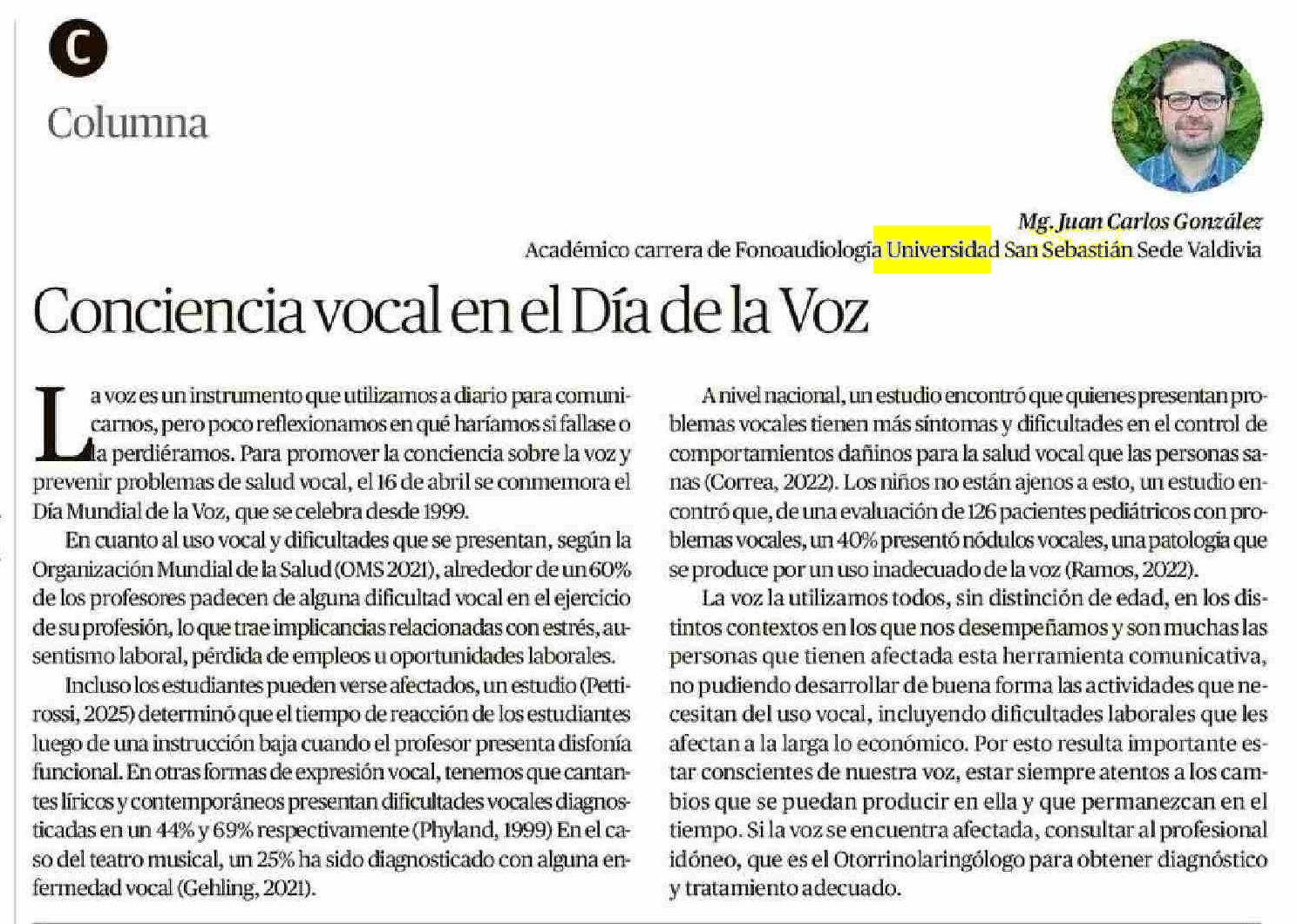 Columnas de Opinión: Conciencia vocal en el Día de la Voz