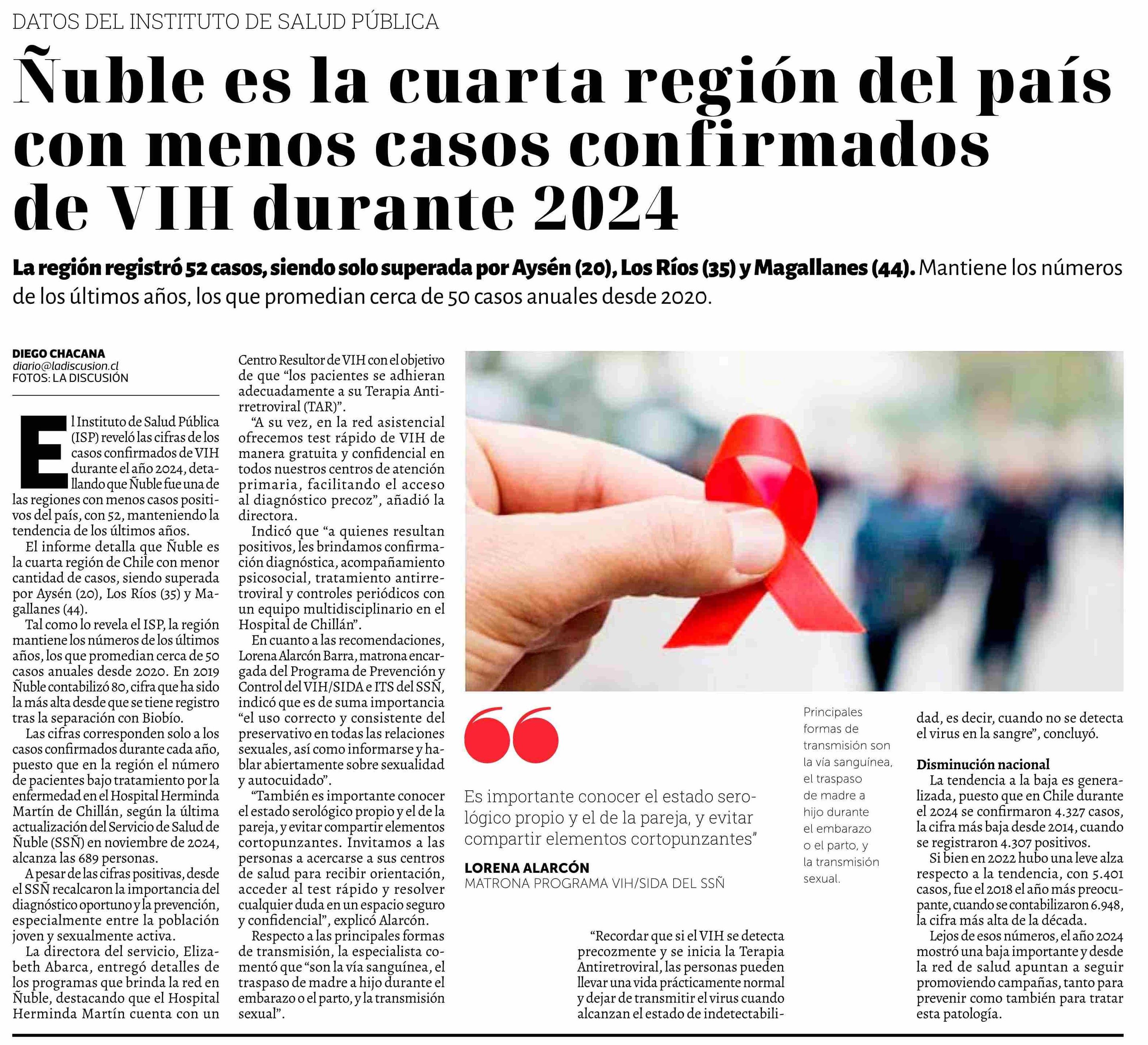 Ñuble es la cuarta región del país con menos casos confirmados de VIH durante 2024