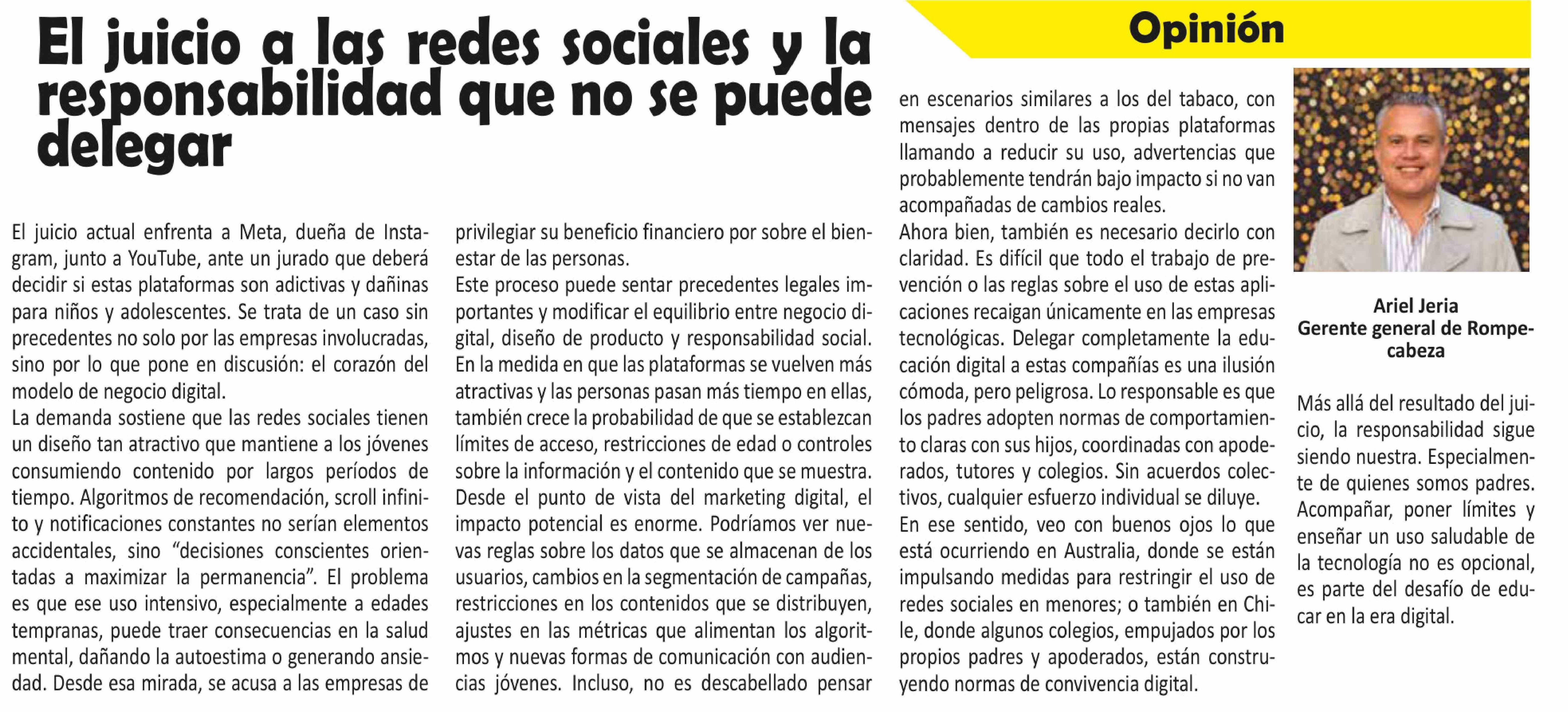 Columnas de Opinión: El juicio a las redes sociales y la responsabilidad que no se puede delegar
