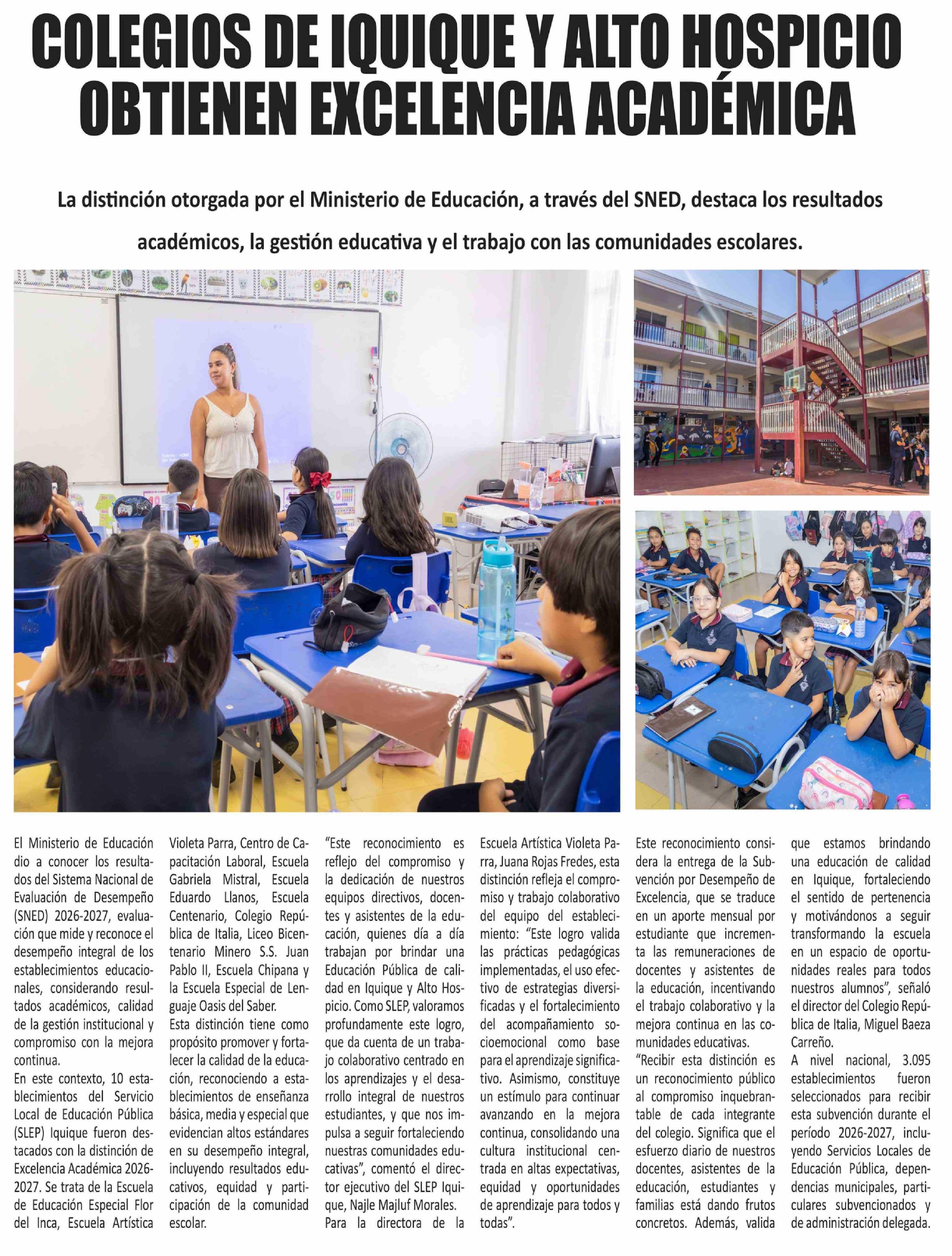 COLEGIOS DE IQUIQUE Y ALTO HOSPICIO OBTIENEN EXCELENCIA ACADÉMICA