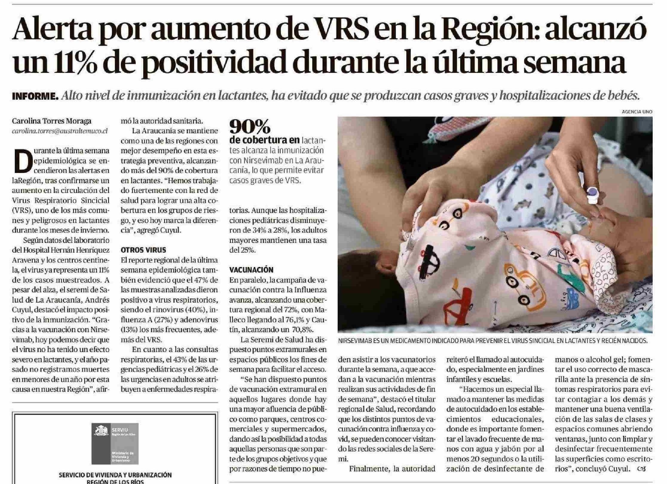 Alerta por aumento de VRS en la Región: alcanzó un 11% de positividad durante la última semana