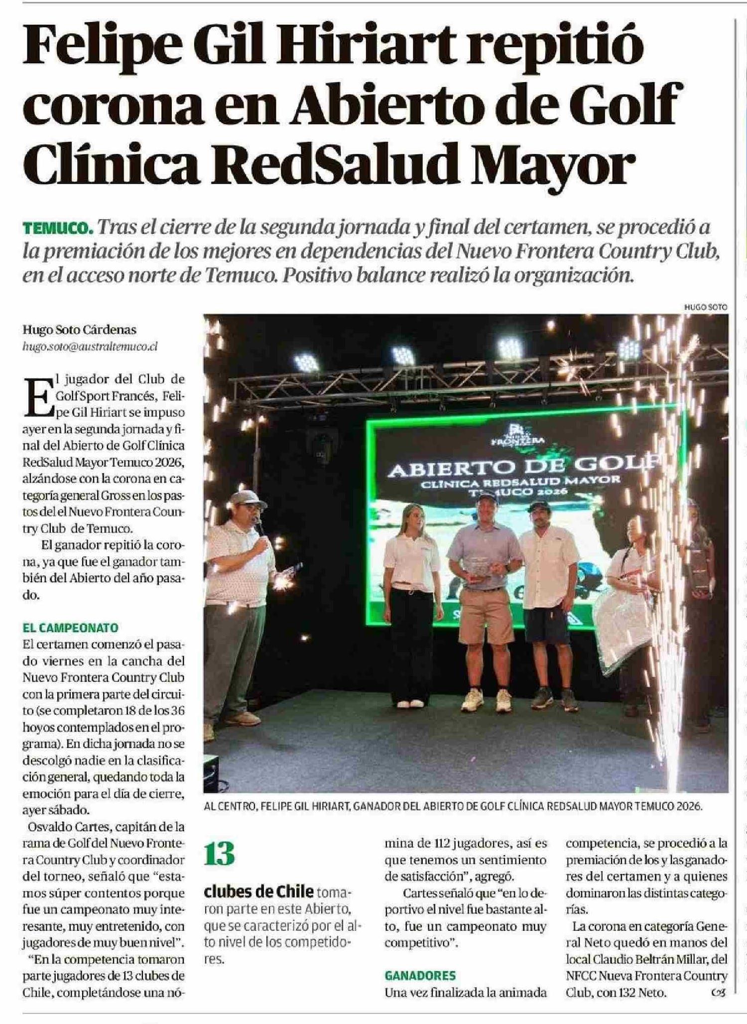 Felipe Gil Hiriart repitió corona en Abierto de Golf Clínica RedSalud Mayor
