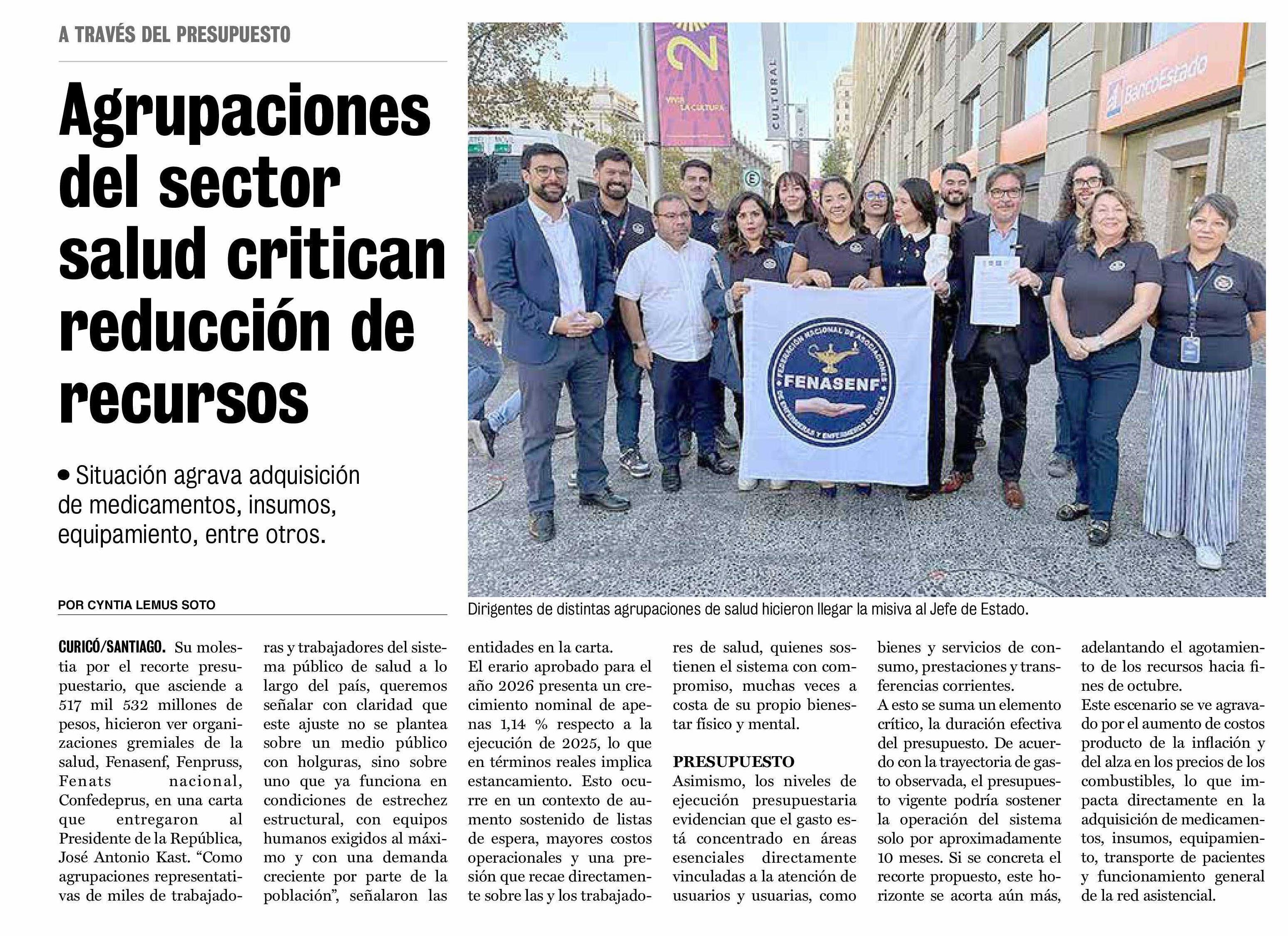 Agrupaciones del sector salud critican reducción de recursos