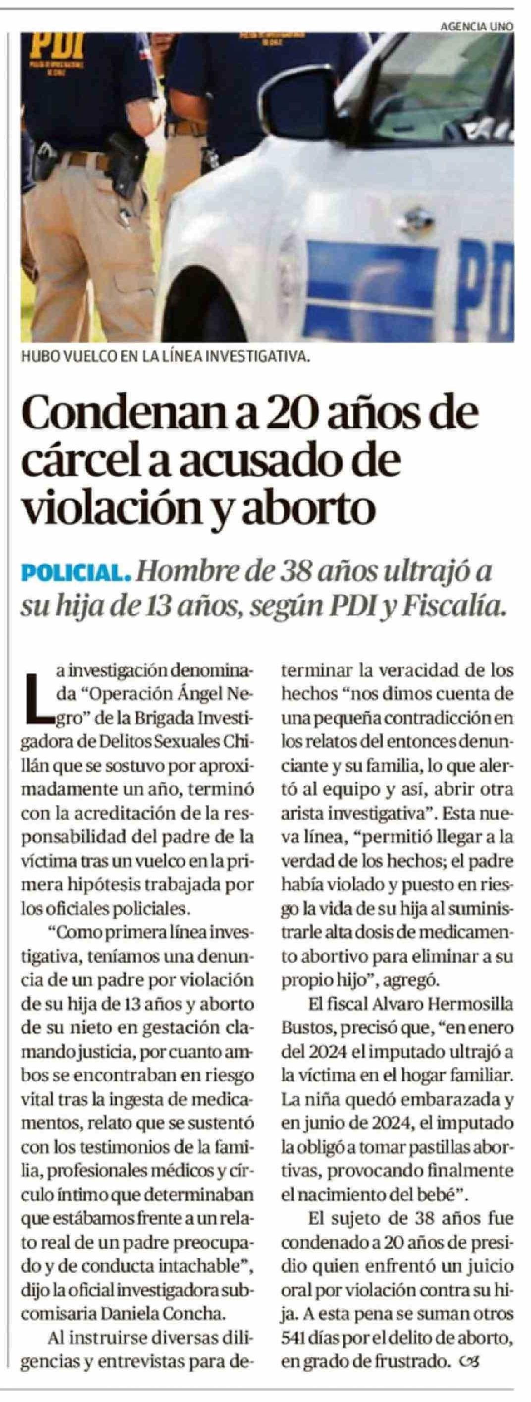 Condenan a 20 años de cárcel a acusado de violación y aborto