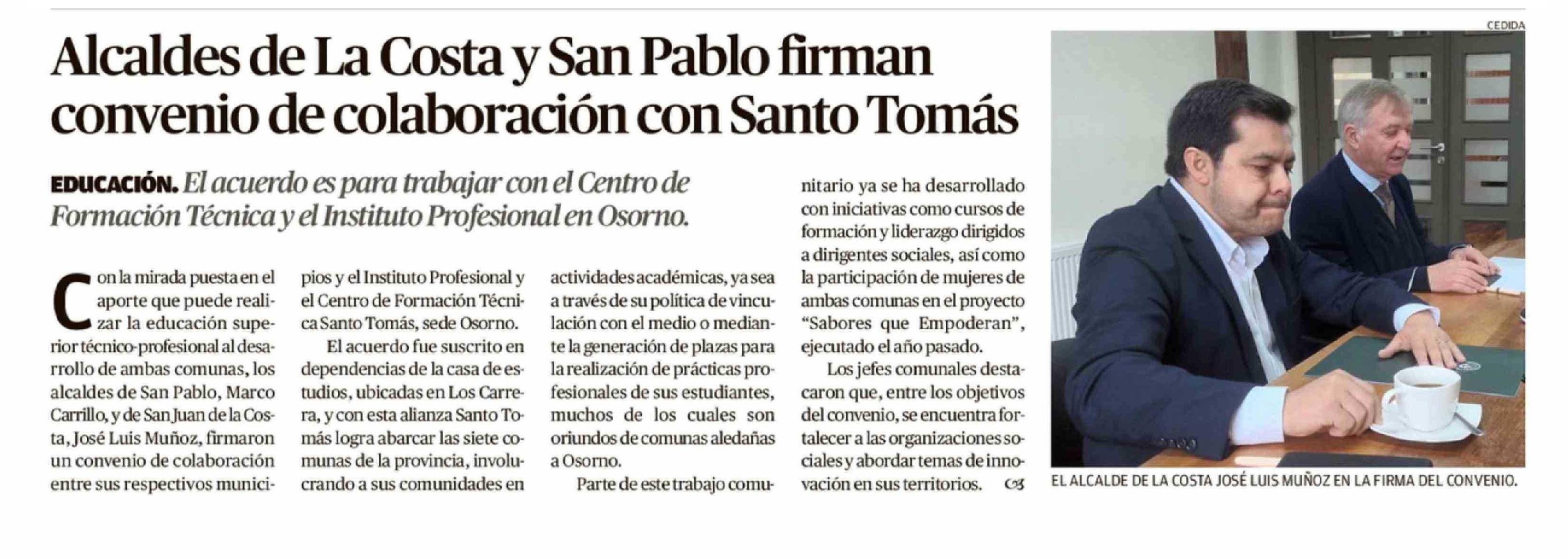 Alcaldes de La Costa y San Pablo firman convenio de colaboración con Santo Tomás
