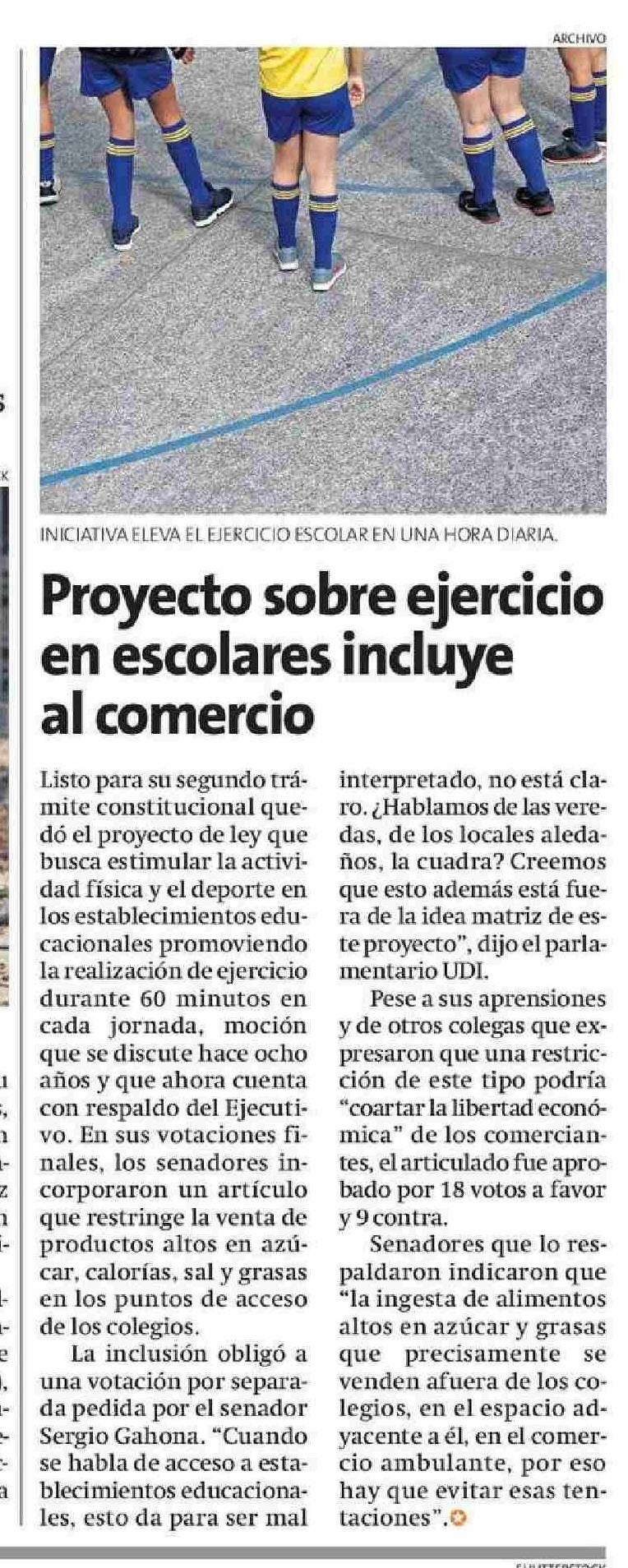 Proyecto sobre ejercicio en escolares incluye al comercio