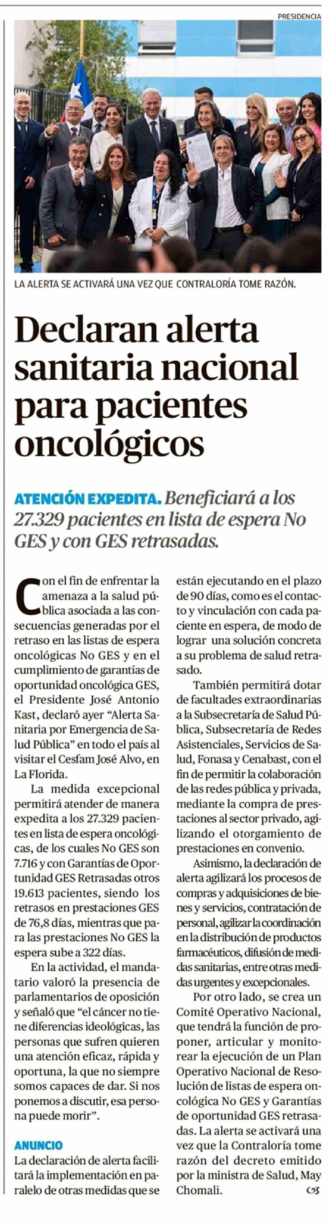 Declaran alerta sanitaria nacional para pacientes oncológicos