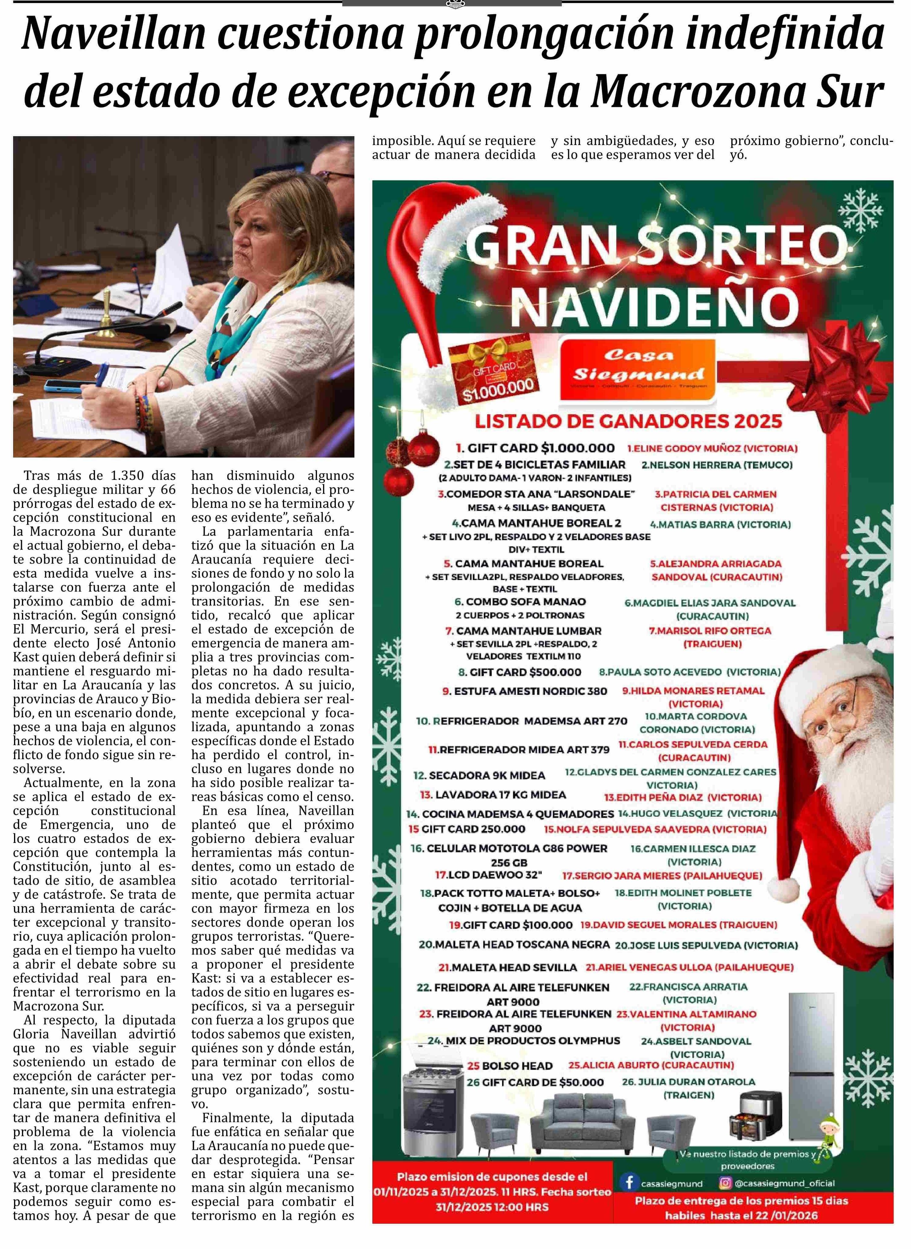 Naveillan cuestiona prolongación indefinida del estado de excepción en la Macrozona Sur