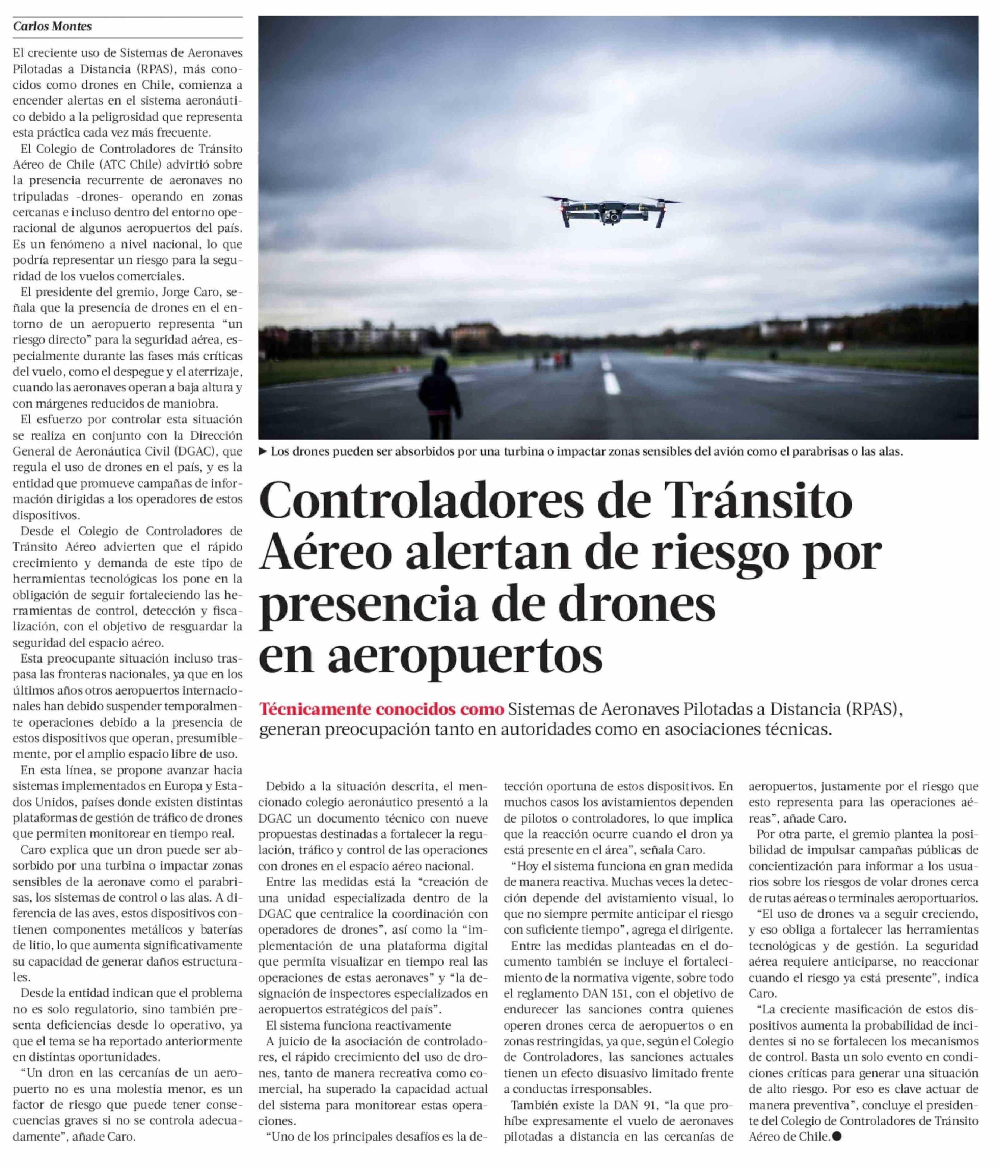 Controladores de Tránsito Aéreo alertan de riesgo por presencia de drones en aeropuertos