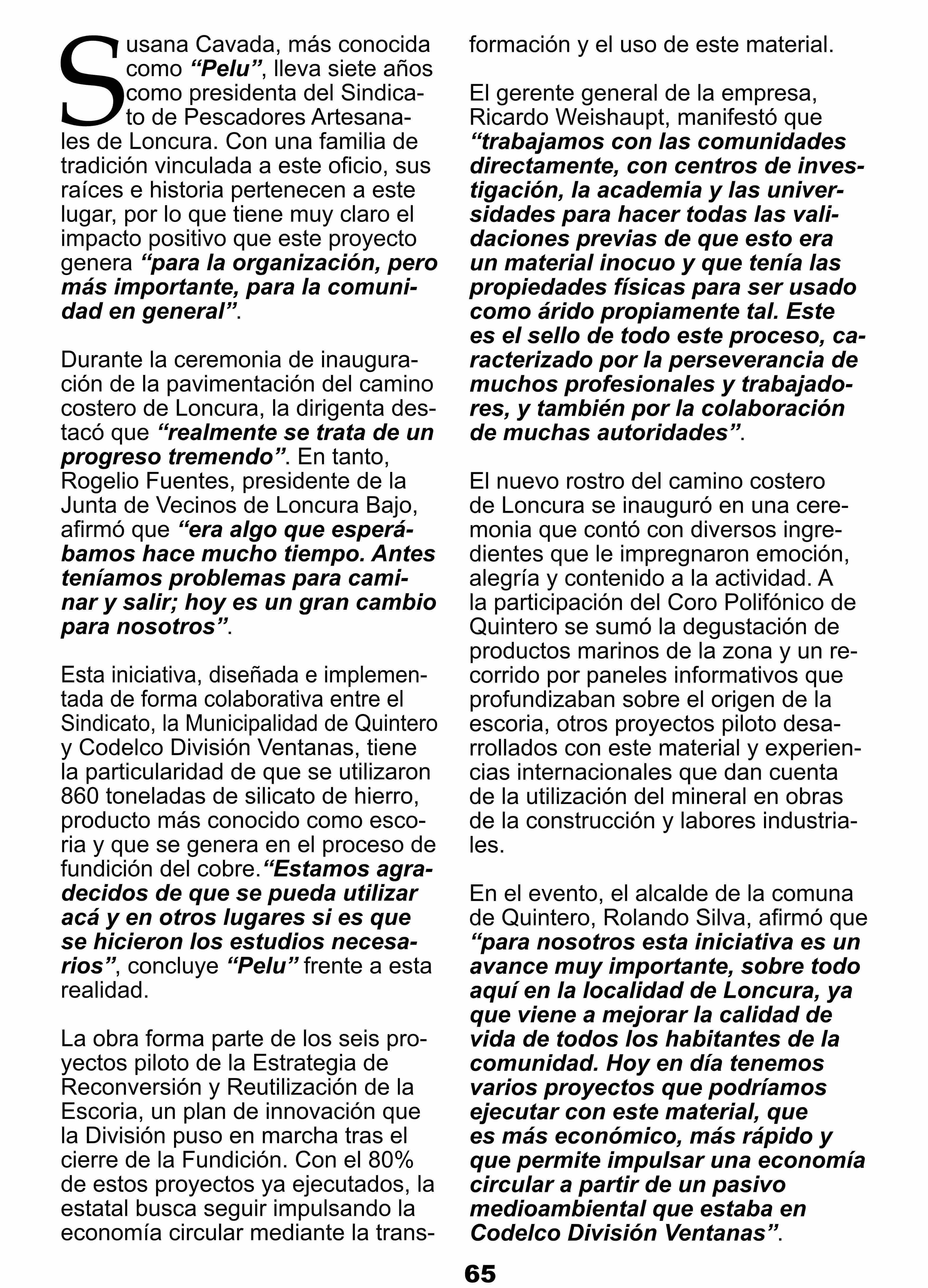 | Título: | Codelco Ventanas pavimenta nuevo camino costero de Loncura utilizando escoria de cobre |