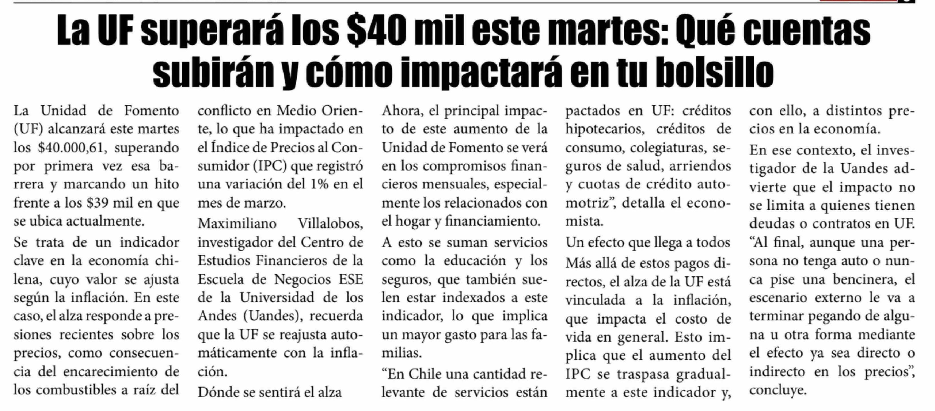 La UF superara los $40 mil este martes: Que cuentas subirán y cómo impactará en tu bolsillo